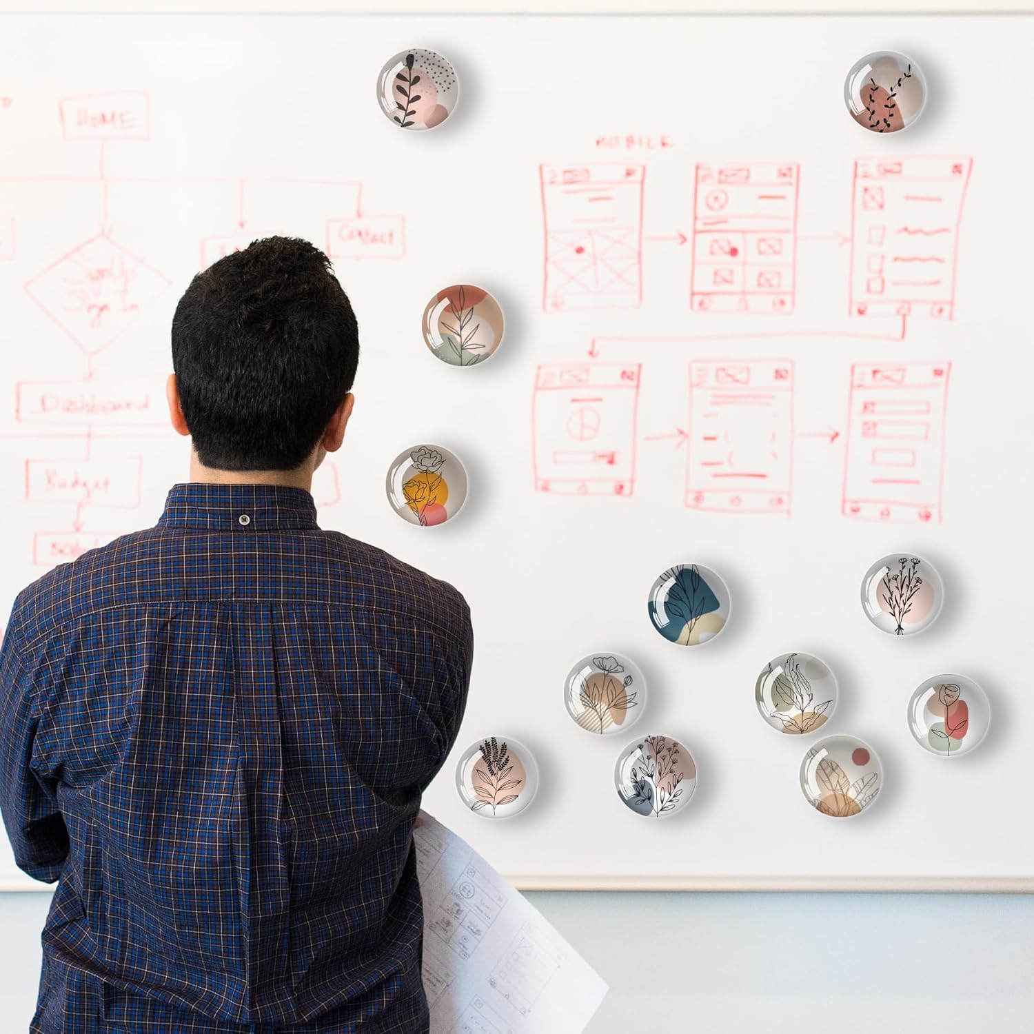 Art Line Flower Refrigerator Magnets 12Pcs Glass Strong Magnetic Refrigerator Magnet Fridge Sticker,Crystal Fridge Magnets Decoration for Crafts,Strong Fridge Magnets for Kitchen, School