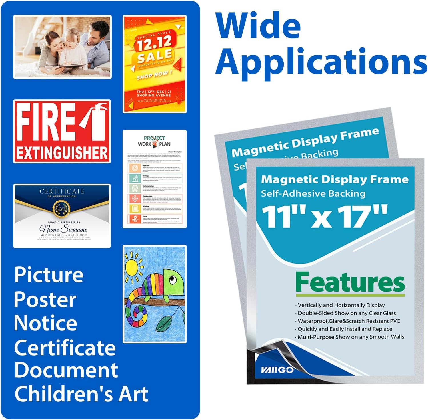 - ✔Magnetic Sign Holder - Can hold 11x17 inch pictures, documents, signs, drawings, certificates, diplomas, flyers, notices, crafts, children's art and more.