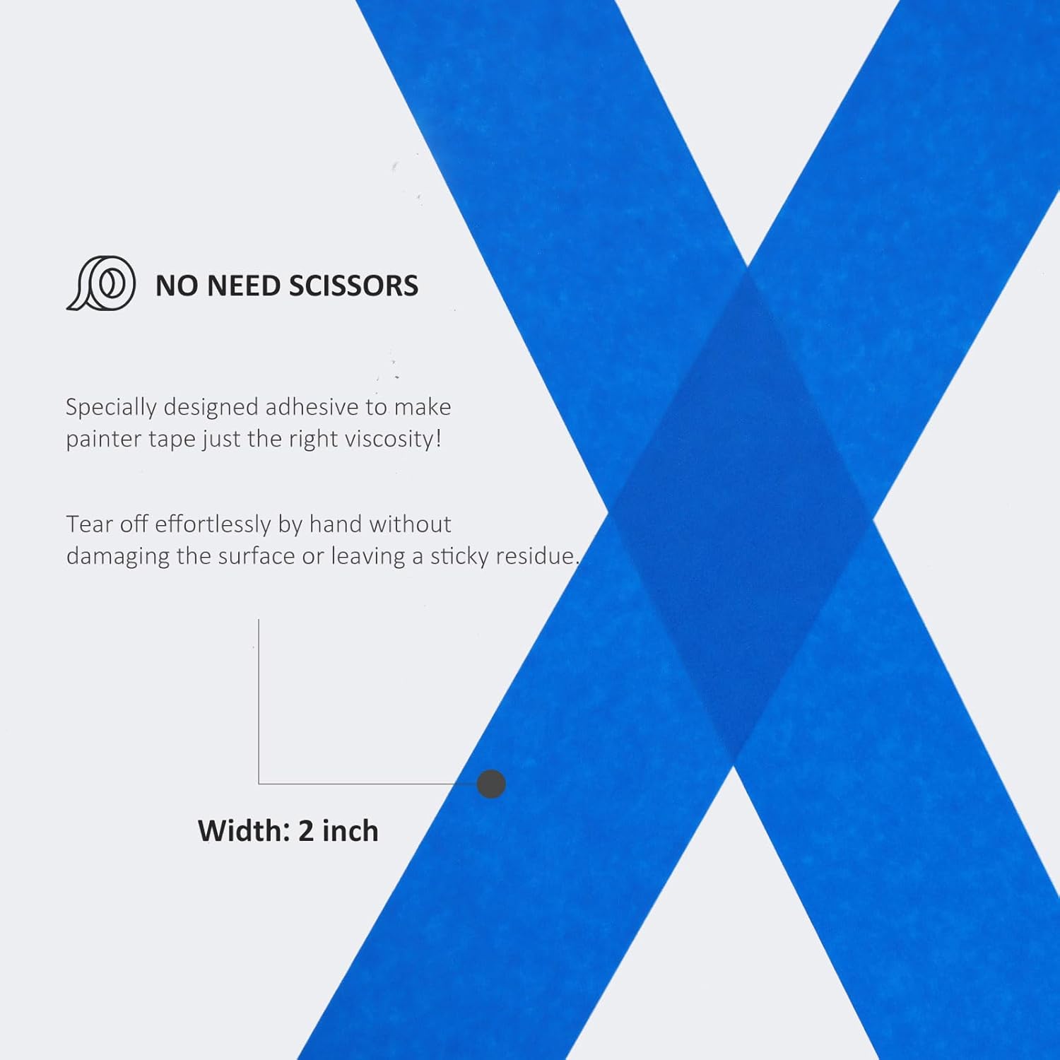 - Professional Grade Tape: Our blue 2-inch painter's tape will create a perfect edge for you. Sharp lines are kept nice and straight and fit perfectly to the surface or wall. It will not bleed through or deform. Even if you are a novice with no painting experience, you can also finish it perfectly. It is great for any kind of painting, edging, masking, and trimming jobs