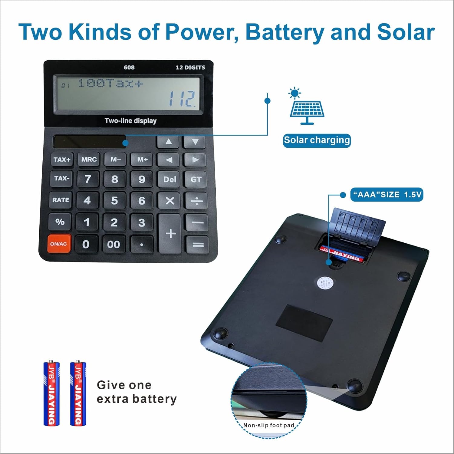 Battery and Solar Unique 120-Step Calculation Check Memory 12 Digit 2 Line Extra Large Calculator Big Buttons and 5.5" LCD Display, Configurable Tax Rate Financial Calculator for Tax Calculations