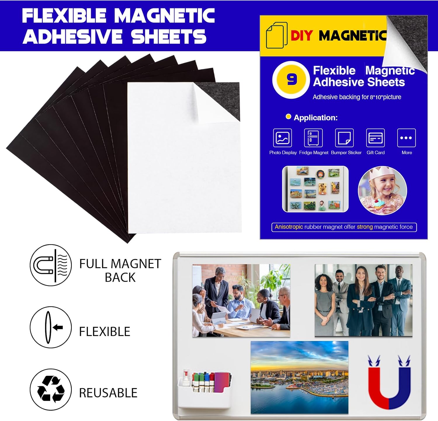 8X10 Picture Magnetic Sheets (Pack of 9),Cuttable Shaped Photo Magnet Sheets with Self-Stick Adhesive Backing for Home/Classroom/Office