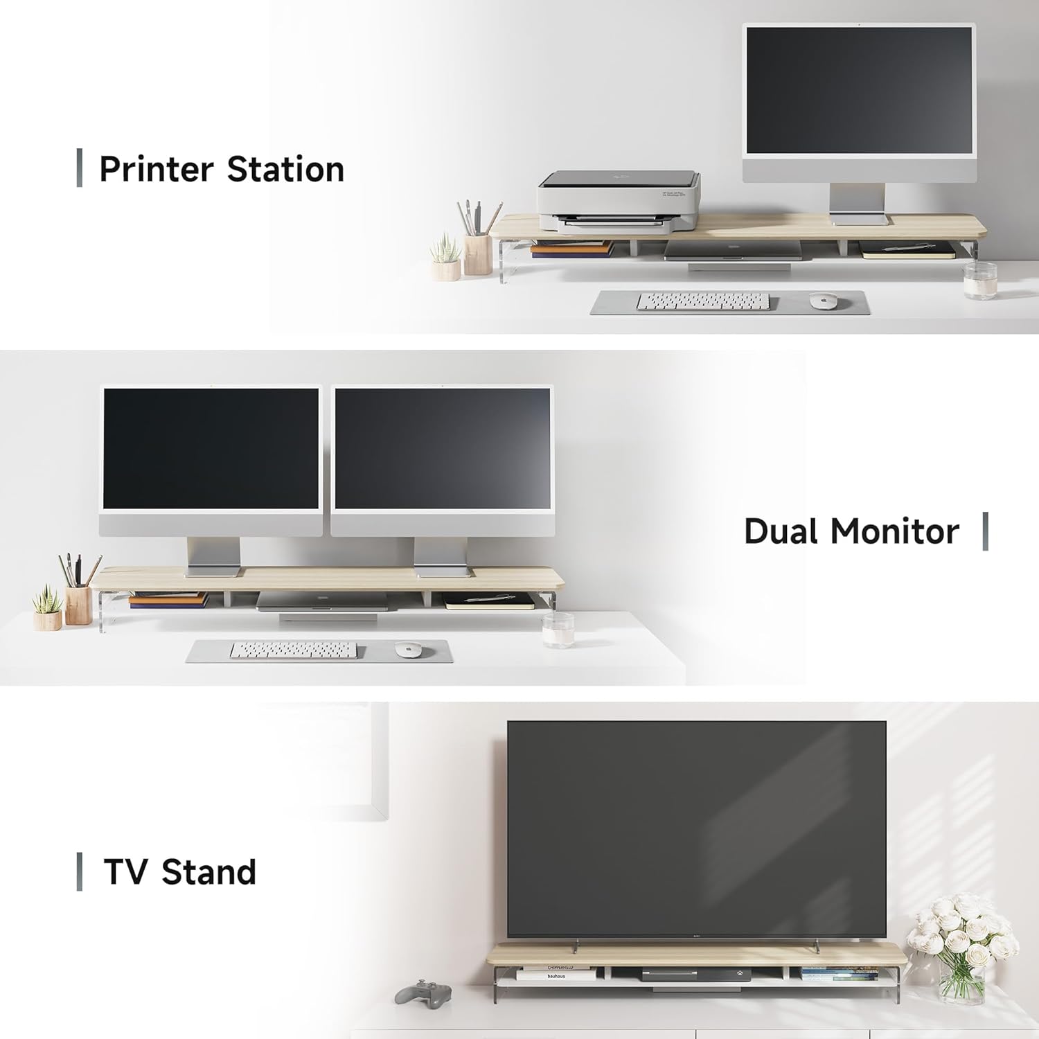 - 【Protect Your Cervical Spine & Eyes】: Acrylic monitor stand can raise your desktop by 4.7 inches to adjust to your eye level, reducing pressure on your neck and eyes.