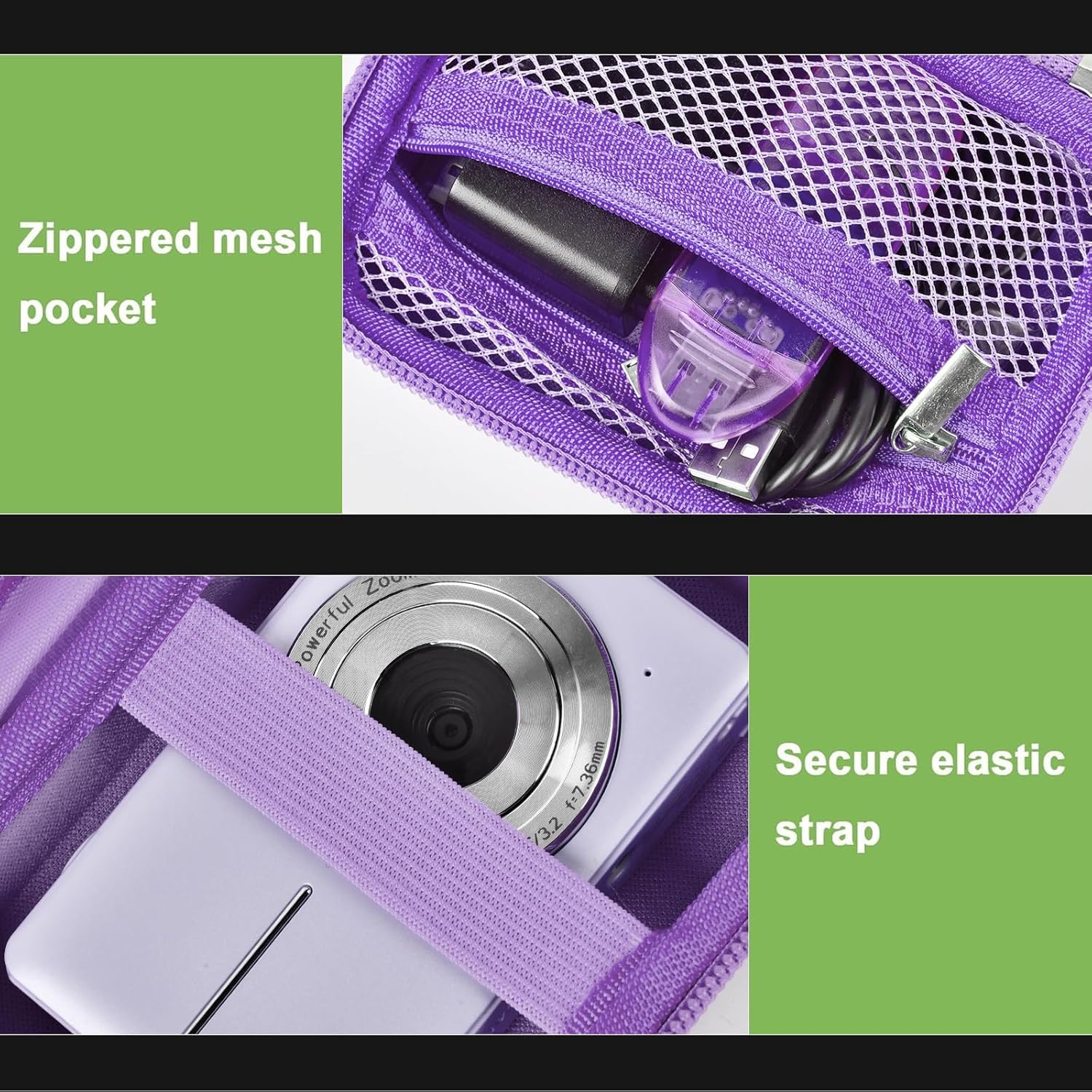 - Spacious zippered mesh pocket- Utilize the practical zippered mesh pocket to store various video camera accessories like chargers, batteries, SD cards, SD Card Reader and data cables. Stay organized, keeping all kids digital camera essentials within easy reach.