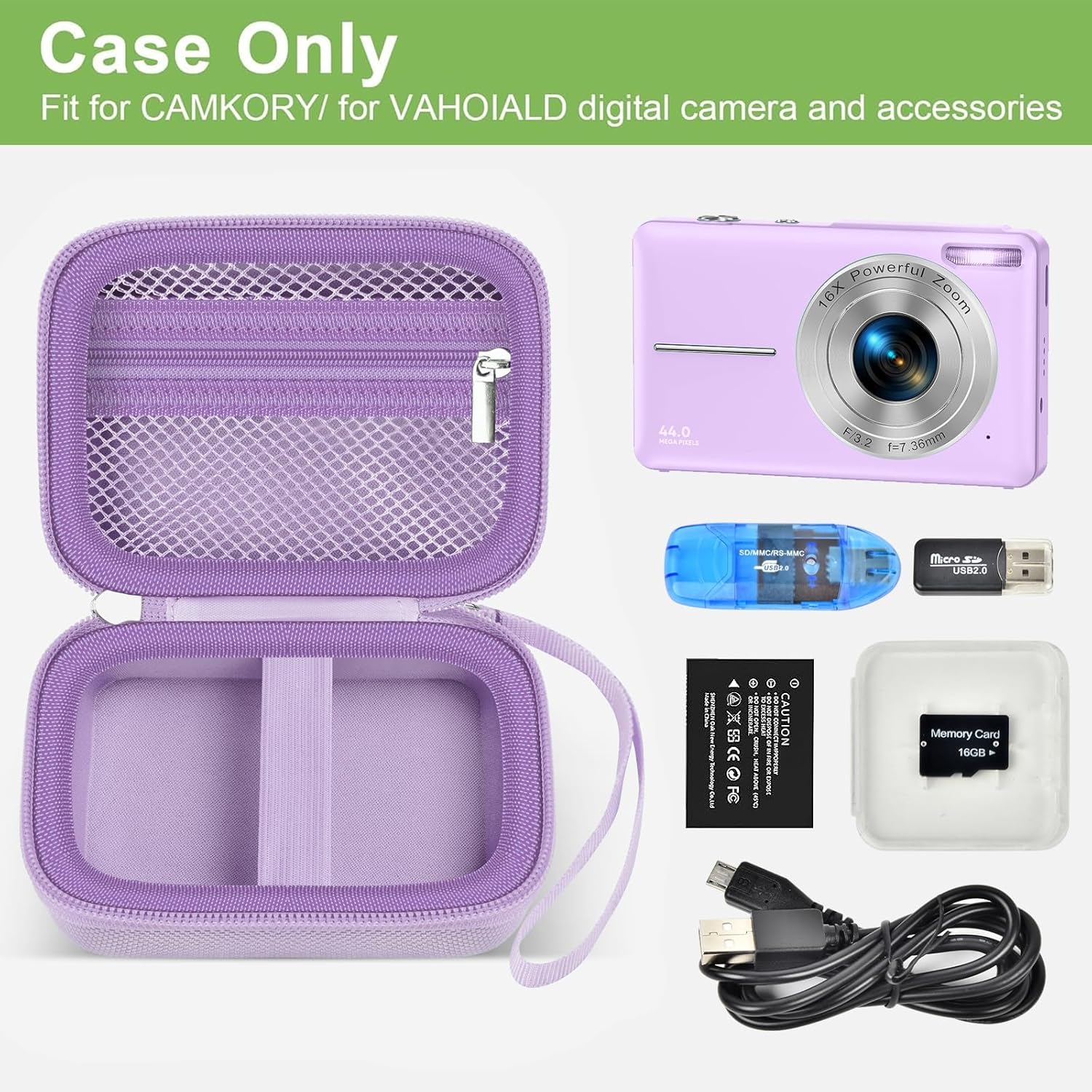 Case Compatible with VAHOIALD FHD 1080P Digital Camera/for CAMKORY Digital Point and Shoot/for KODAK PIXPRO FZ45-BK 16MP Vlogging/for IWEUKJLO/for Nsoela, Holder for SD Card More (Purple)