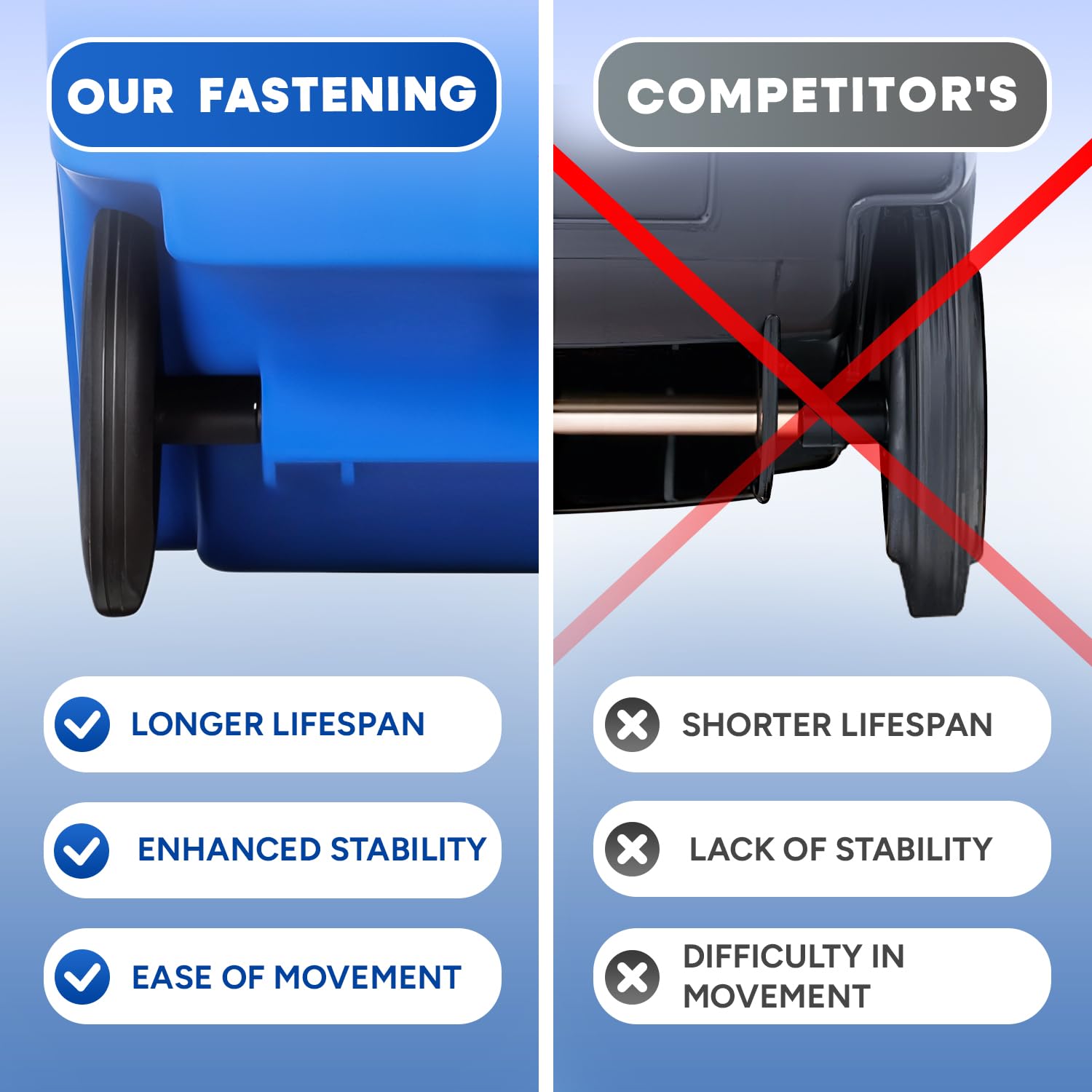 - Smooth Mobility: The built-in wheels provide smooth and effortless rolling, making it easy to transport heavy loads of recyclables.