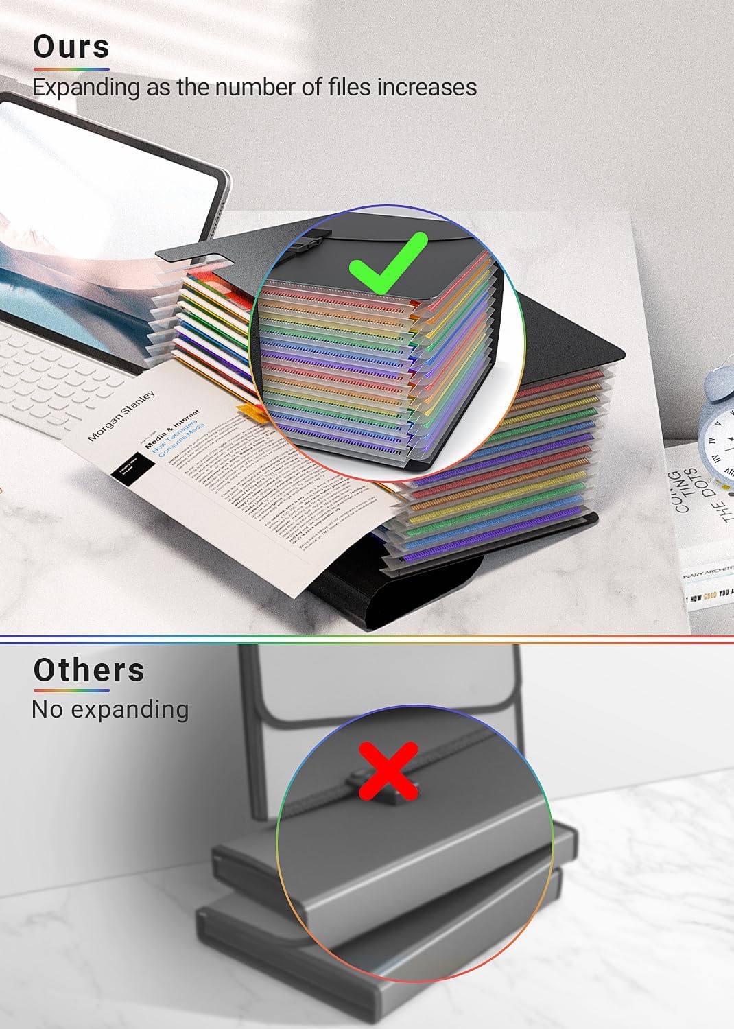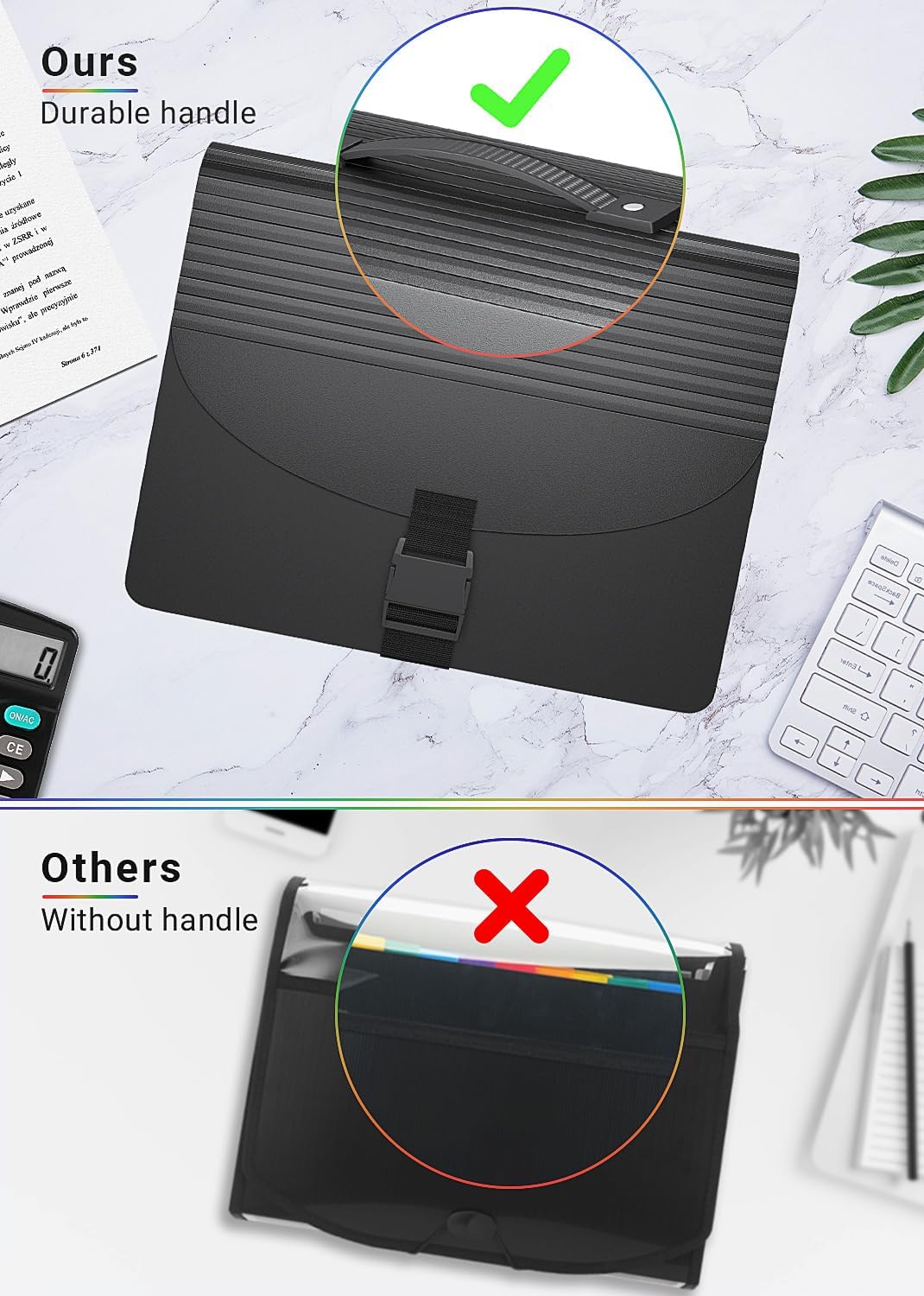 - ✔【UPGRADED】This innovative expanding file organizer,designed with a durable plastic handle and a fashion buckle, successfully upgraded from traditional file folders,More easily take all important documents away to any time and anywhere when hold a good amount of documents, the buckle is perfect to protect the safety of files.
