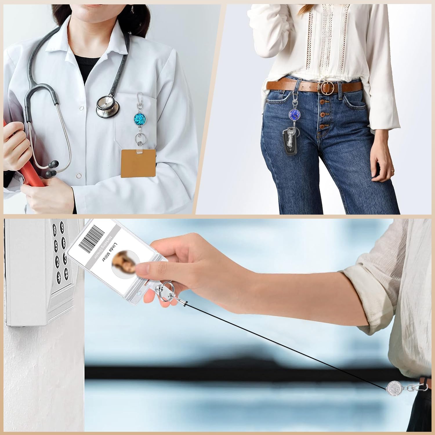 - 【FUNCTION】: Easy to attach to belts, lanyards, card holders, pockets, wallets, straps, backpacks or anywhere you like. Comes with a key ring for use as a retractable keychain. Keep all your keys in one place and your work badge badge is easy to access.