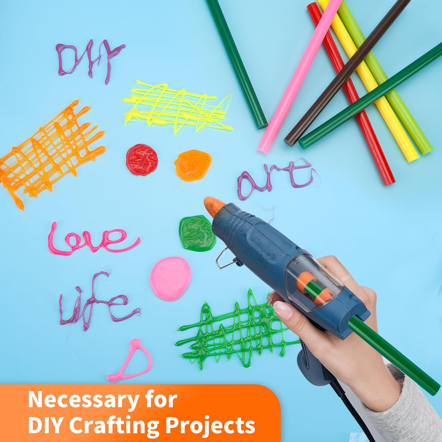 - 【Wide Application】hot glue gun sticks are perfect for crafting, card making, scrapbooking, carton sealing, phone case beauty, electronic appliances, gluing projects, waxing seal stamp, general repairs,creating arts, holiday crafts, decorations, home, office, school DIY and toys.