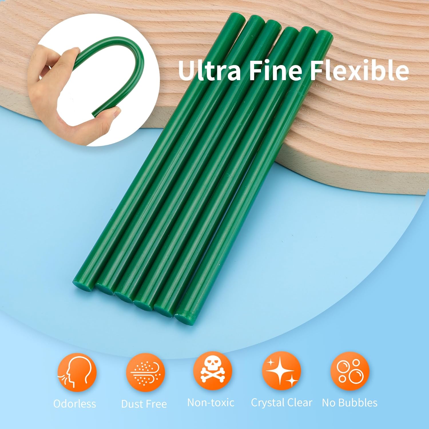 - 【Value Pack】52 pcs green hot glue Sticks Full Size, 11mm/0.43 inch diameter and 200mm/8 inch Length, Long hot glue sticks smooth operation, No need to change glue sticks Frequently, for variety holiday decorations, crafts, arts creation gluing projects and most repair use
