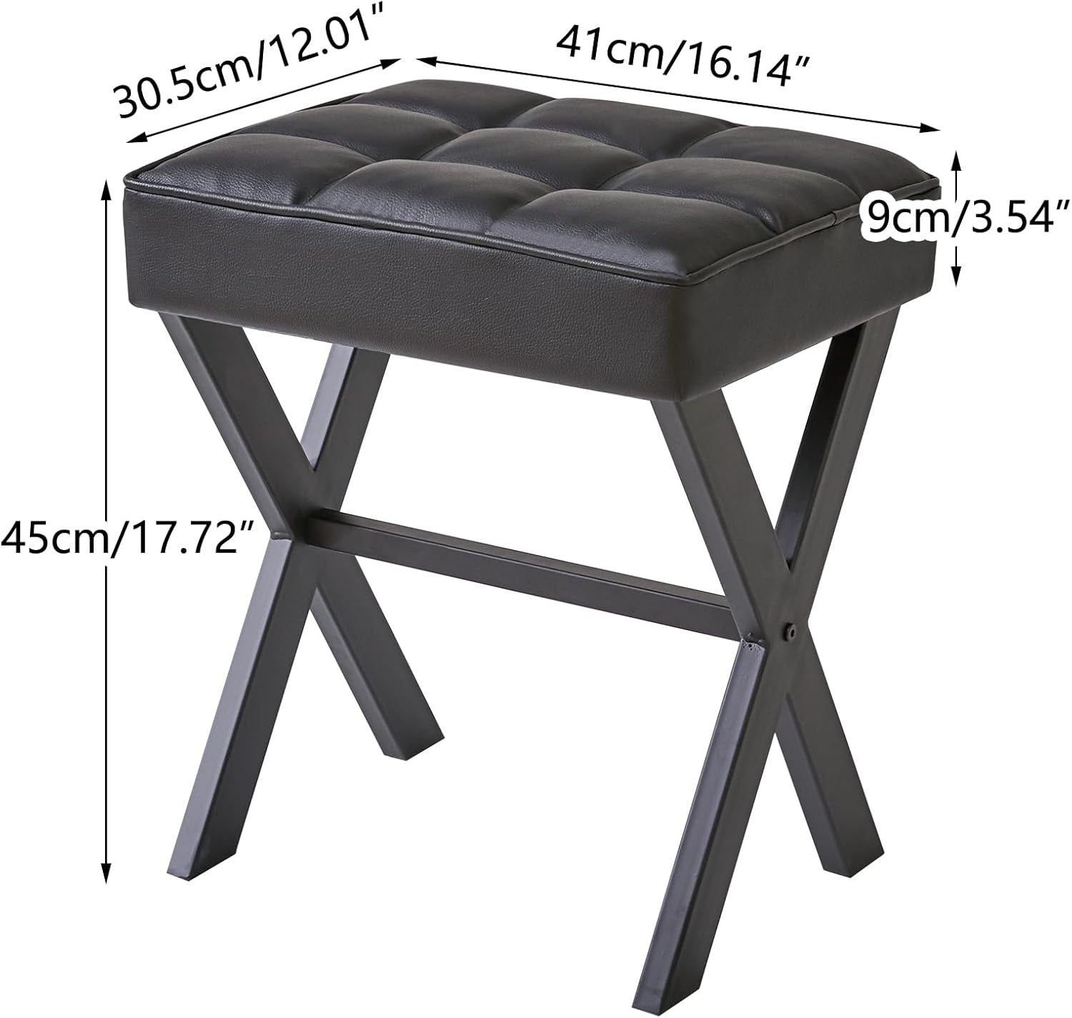 - High quality: This stool comes in two options: linen and synthetic leather, paired with black X-shaped metal stool legs to ensure durability and enhance product aesthetics.