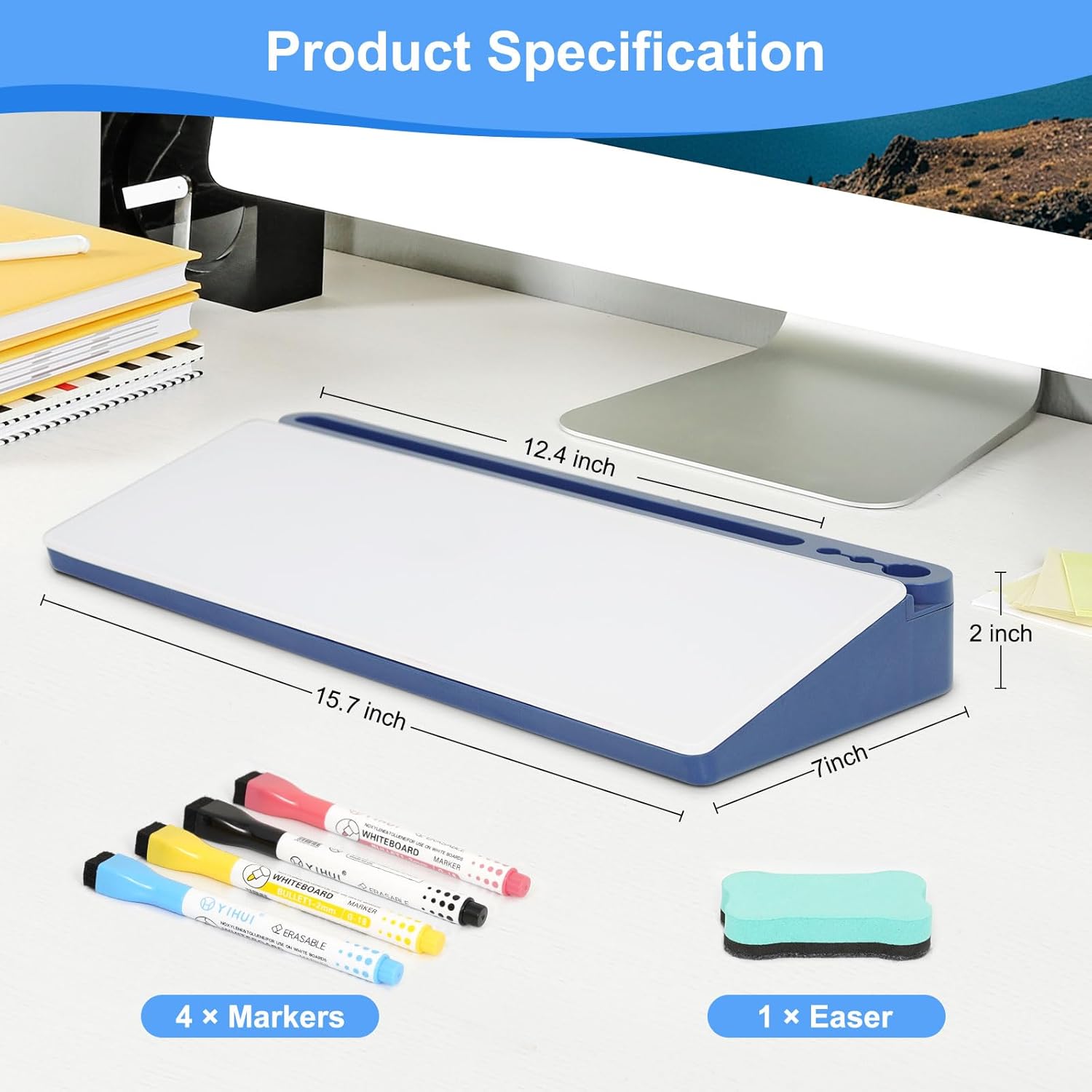 - Compact Size for Desk - Sitting compactly between your computer and keyboard, this small glass whiteboard can maximizes your workspace. The dimension of the product is 15.7 x 7 x 2 inches, which make it as a valuable addition to office. At the same time, it can enhance office organization and efficiency.