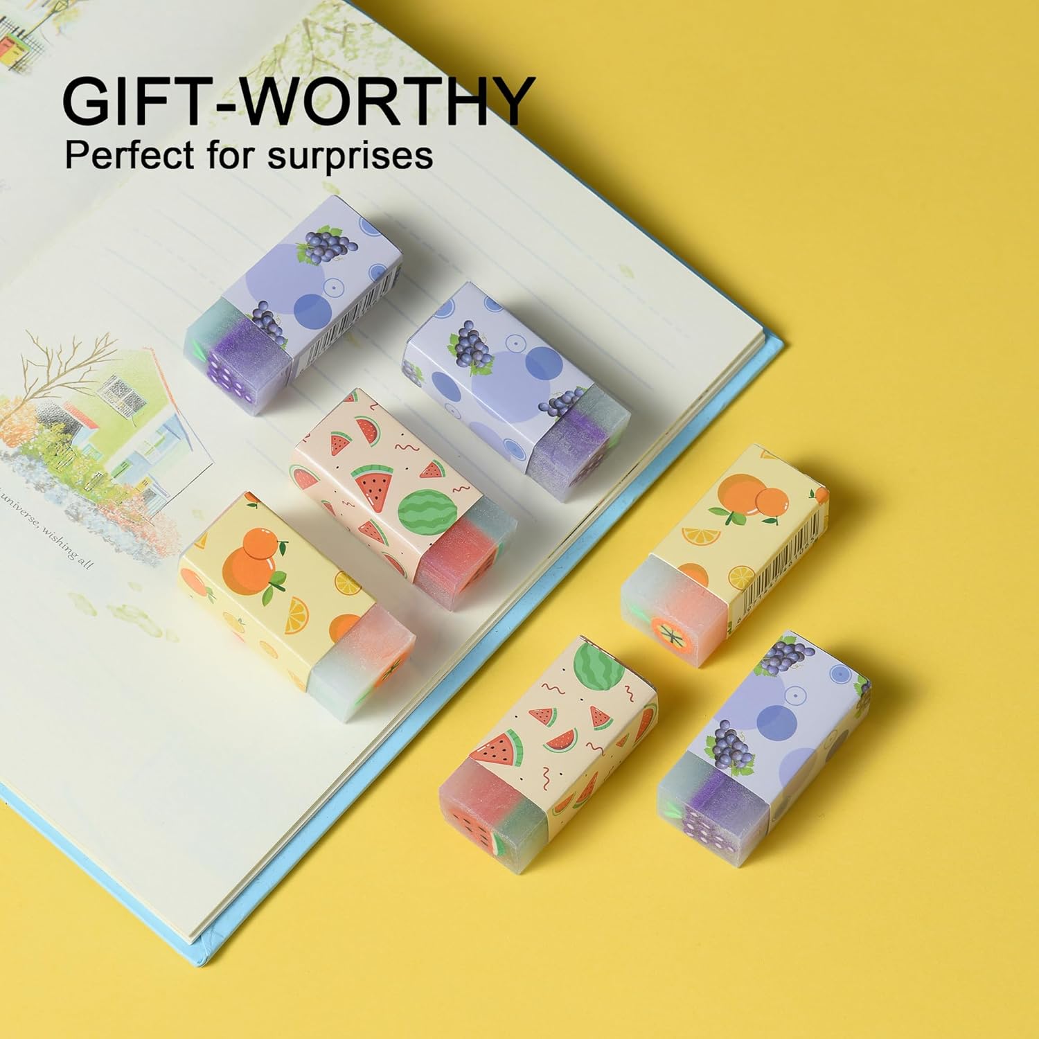 - Experience the fun with our 18Pcs Cute Fruit Erasers for Kids – a delight for young learners!