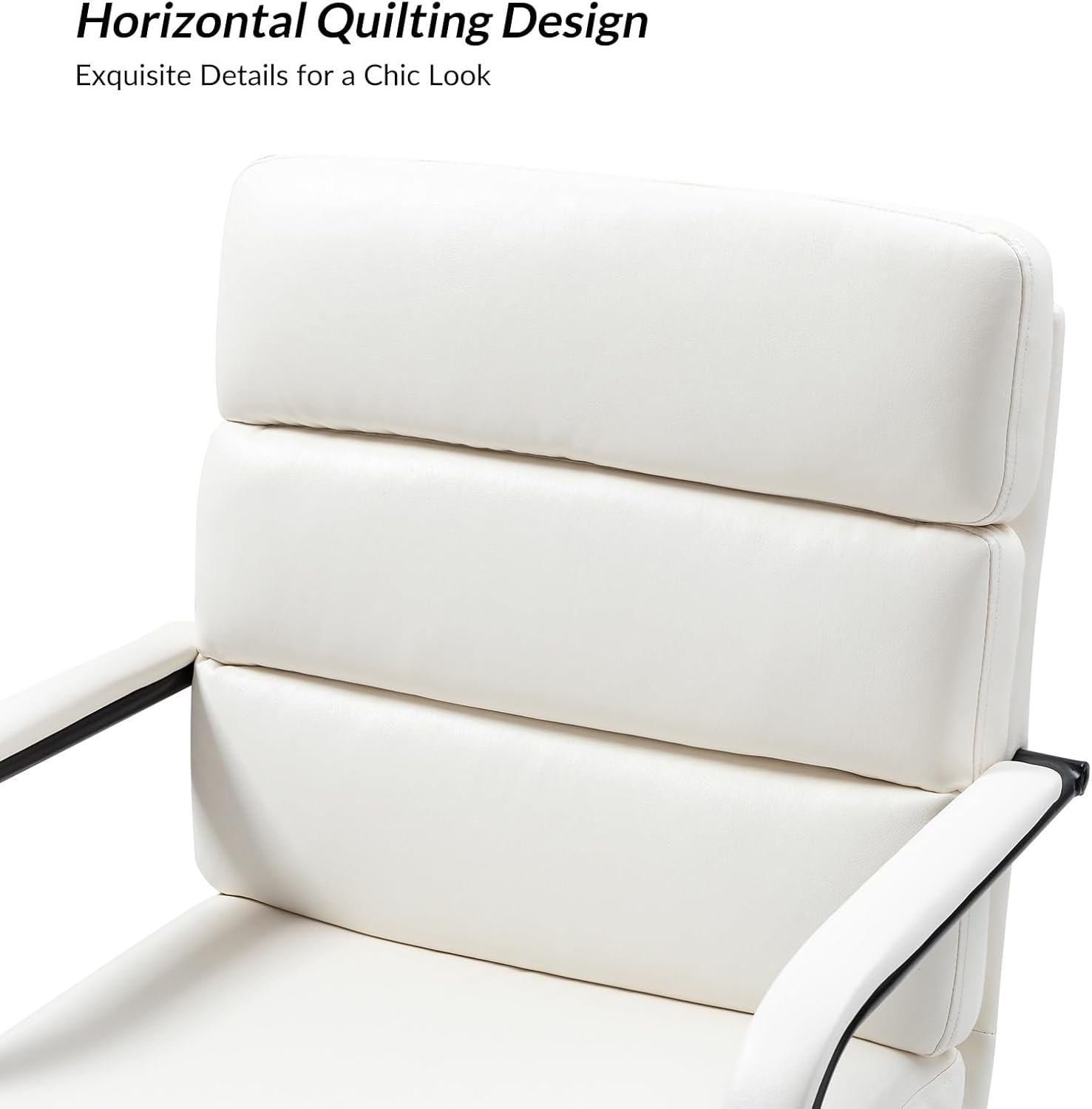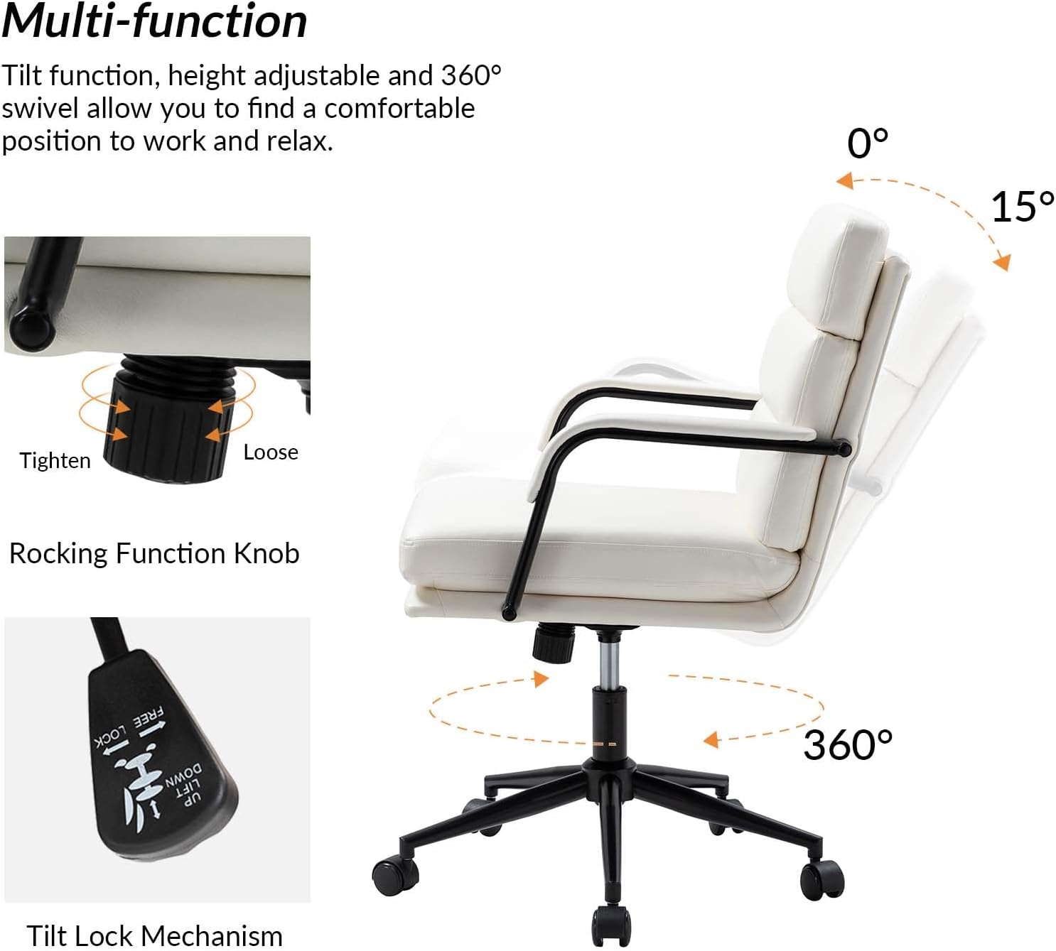 HULALA HOME Modern Faux Leather Home Office Chair with Tilt Lock & Metal Base, Desk Chair with Wheels & Padded Cushion, 360° Swivel Wide Seat Computer Task Chair, White