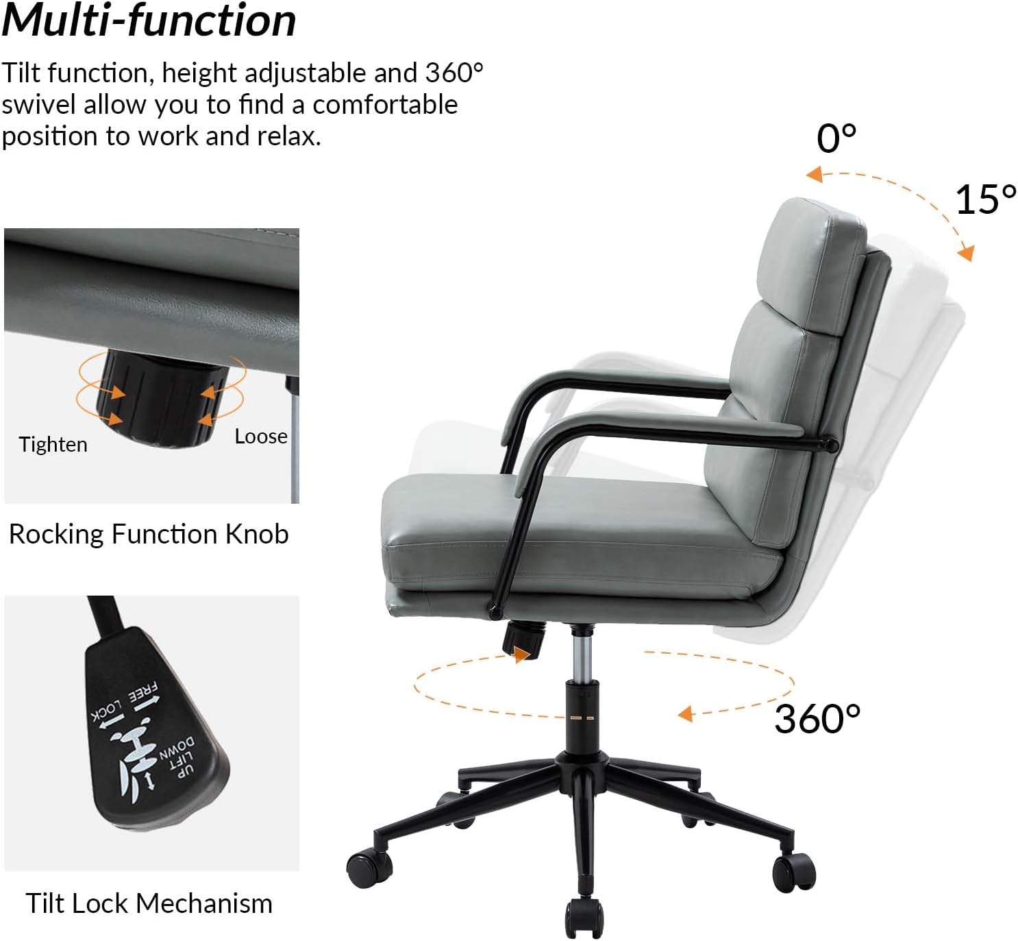 HULALA HOME Modern Faux Leather Home Office Chair with Tilt Lock & Metal Base, Desk Chair with Wheels & Padded Cushion, 360° Swivel Wide Seat Computer Task Chair, Sage