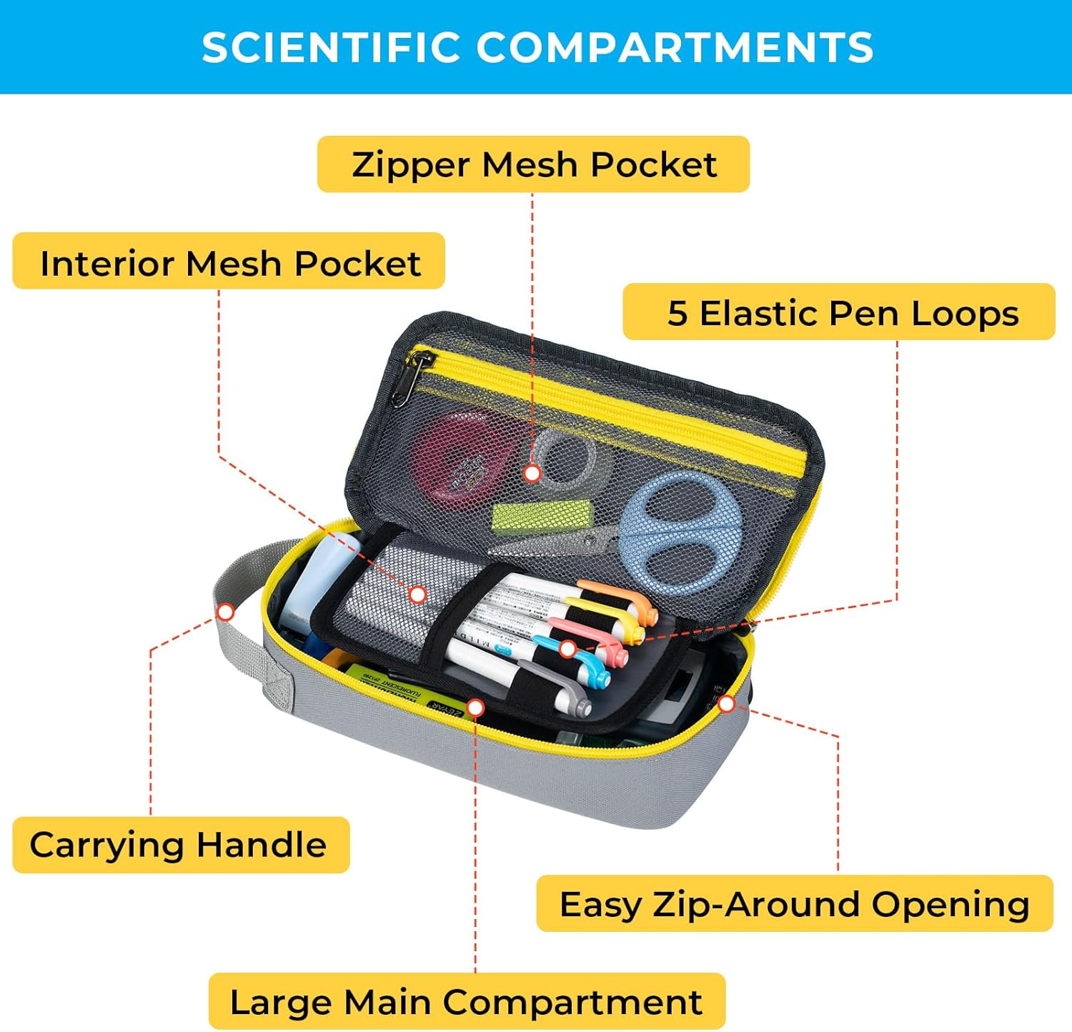 - LARGE CAPACITY: 9.44" x 4.72" x 2.36". Pencil case has a scientific storage design with a deep big capacity that can easily hold your supplies such as pens, pencils, markers, highlighters, erasers, a calculator, notes, and other stationery items. Spacious, Functional, and Aesthetic