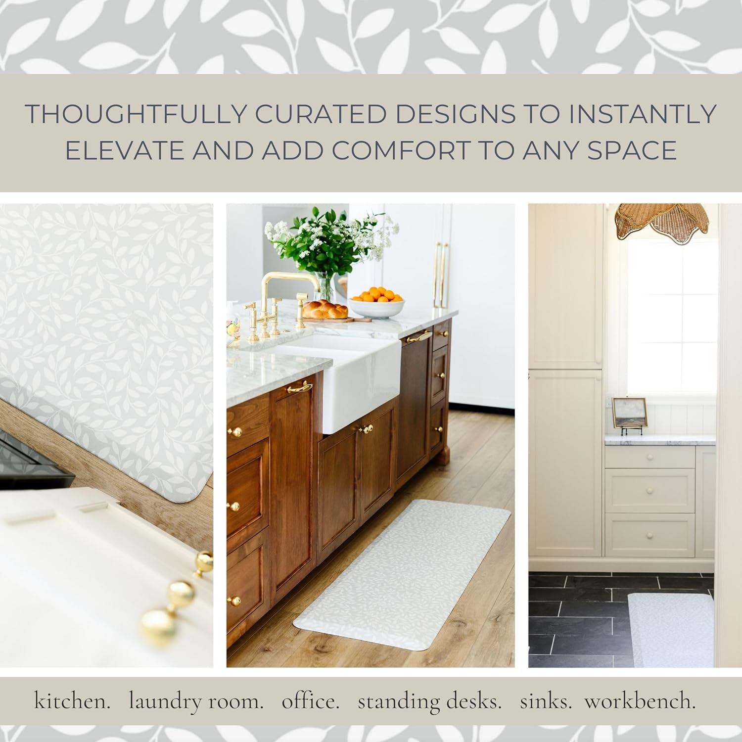 - DESIGNER ELEMENT: Elevate the aesthetics of your home with our beautifully curated anti-fatigue kitchen mats. With practical and timeless designs, these premium standing mats seamlessly blend beauty with functionality elevating your home, standing desk, work station, and any space where you stand.