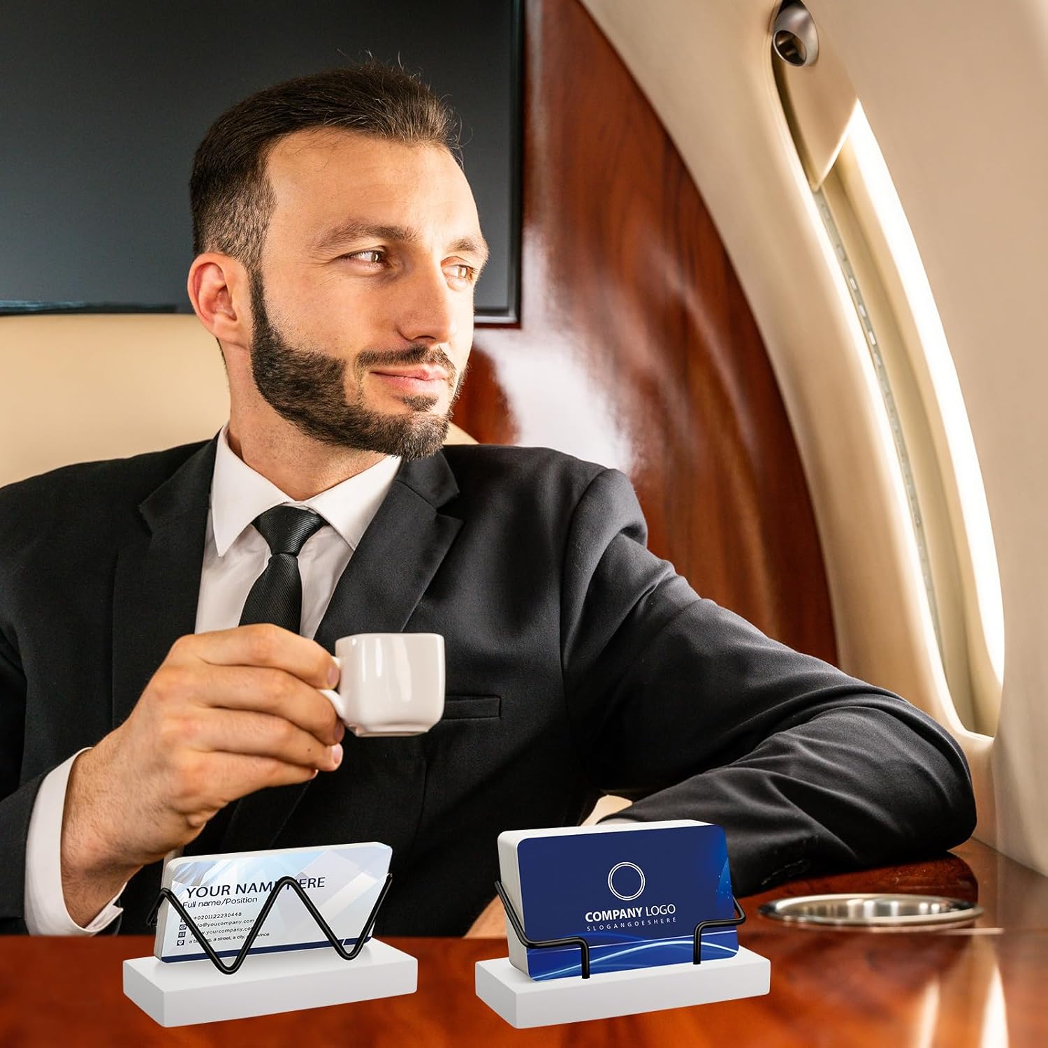 - Large Capacity: each business card holder stand can hold approximately 75 cards, suitable for business cards, credit cards, labels, brochures, etc., which can keep your desktop and workspace organized, bringing you a lot of convenience