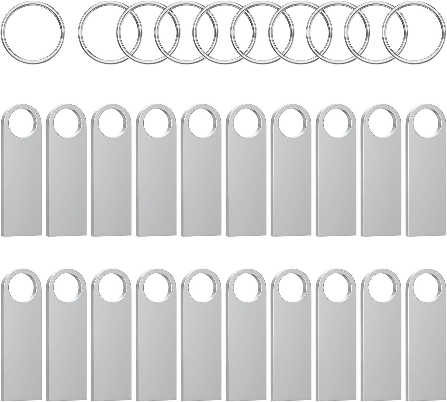 ABLAZE 128MB Flash Drive 20 Pack, Metal USB 2.0 Thumb Drives with Keychains USB Sticks Pendrives (Sliver)