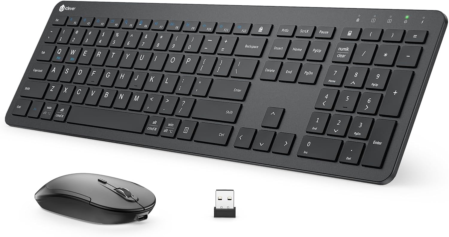iClever Wireless Keyboard and Mouse, GK08 Rechargeable Keyboard Mouse Combo, Ergonomic, Quiet, Full Size Design with Number Pad, 2.4G Connection for Mac, Windows and Computer