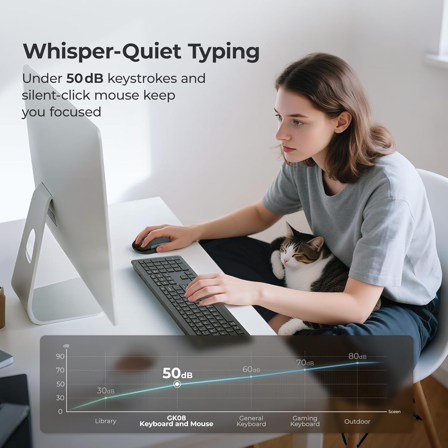 - Quiet & Comfortable Typing: Features low-profile scissor-switch keys that deliver a smooth, silent typing experience—ideal for home offices, libraries, and shared workspaces.