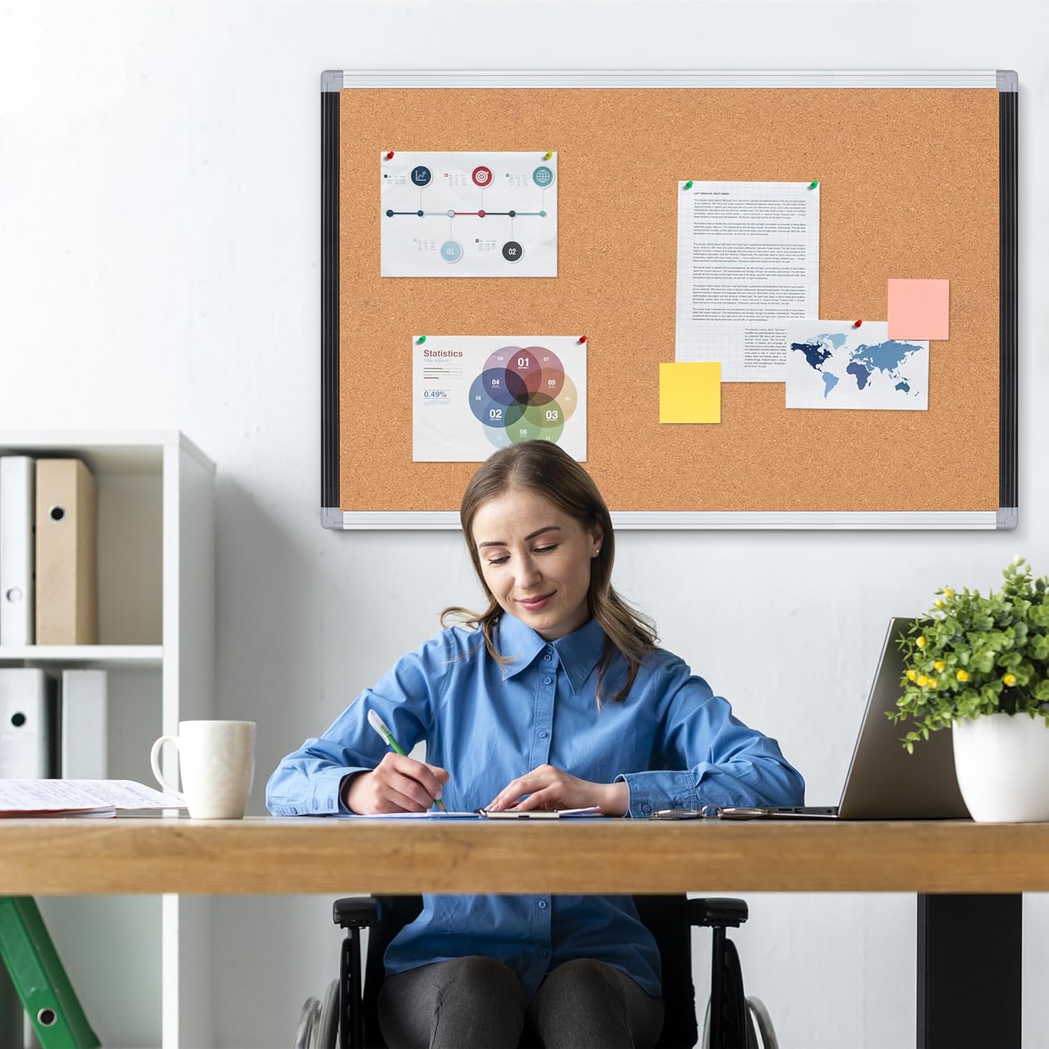 Board2by Cork Board Bulletin Board 24" x 36", Black/Silver Aluminium Framed Corkboard, Office Board for Wall Decor, Large Wall Mounted Notice Pin Board with 18 Push Pins for School, Home & Office