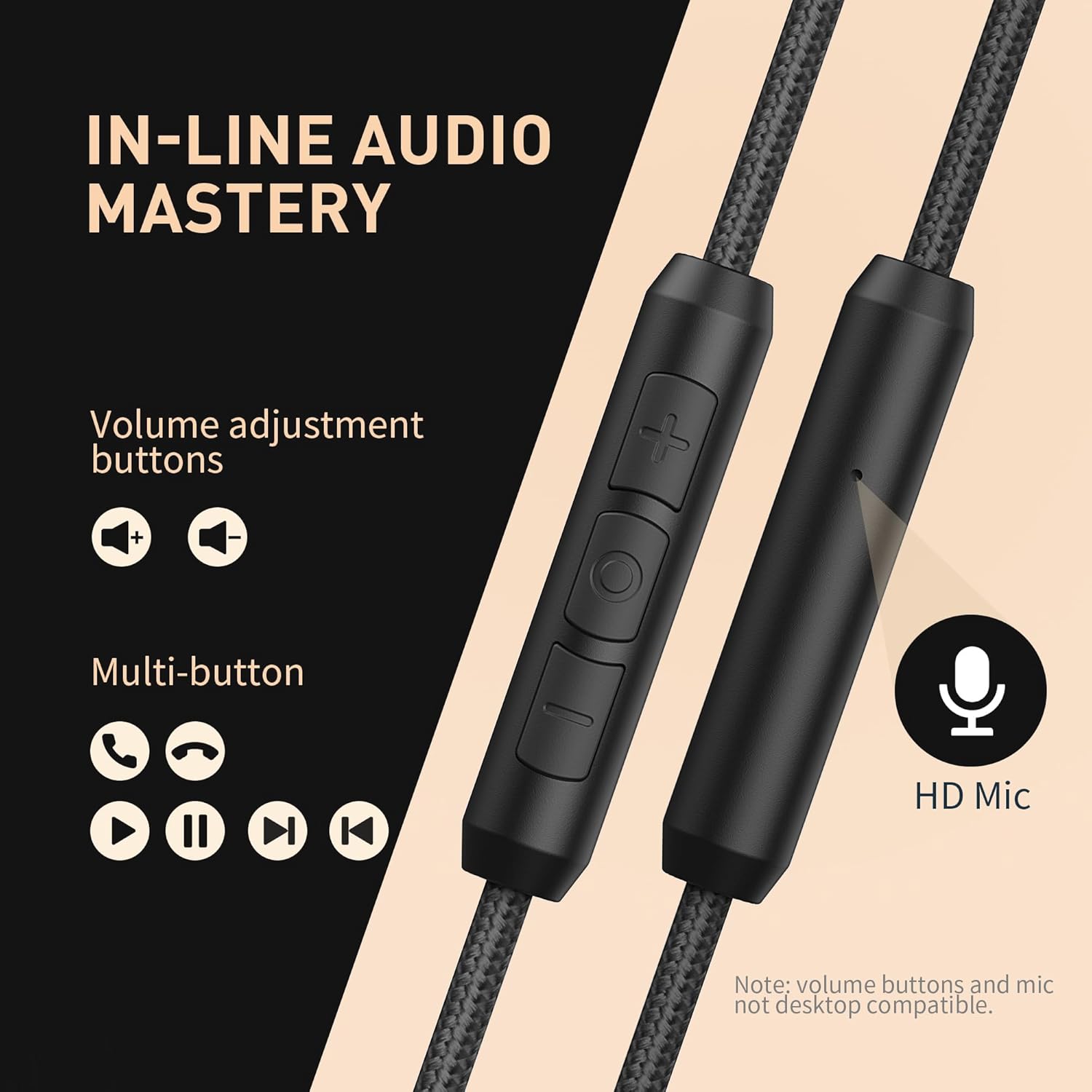 - Built-in Microphone & Effortless Controls: Conveniently adjust the volume with the in-line controls, and the high-definition microphone guarantees clear voice pickup, enhancing your communication experience. Please note that the volume control button on the in-line controls may not be compatible with computers
