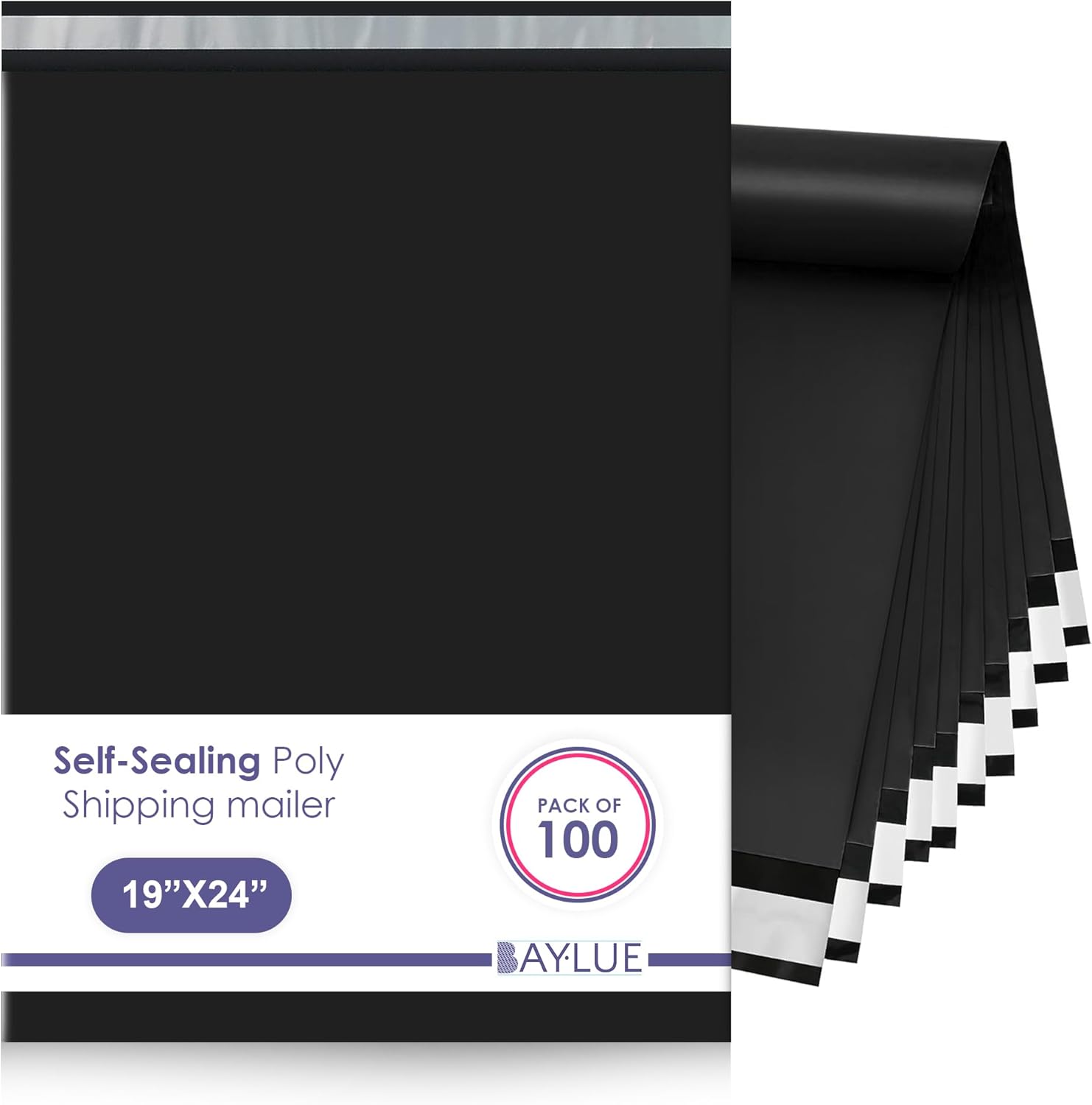 Black Large Poly Mailers 19x24 Inch | Strong Adhesive Self-Seal Mailer Bags | Tear, Tamper, Water Resistant Shipping Envelopes | Thick Strong polymailer Bags XL Clothing Shipping Bags | 100 Pcs Bulk