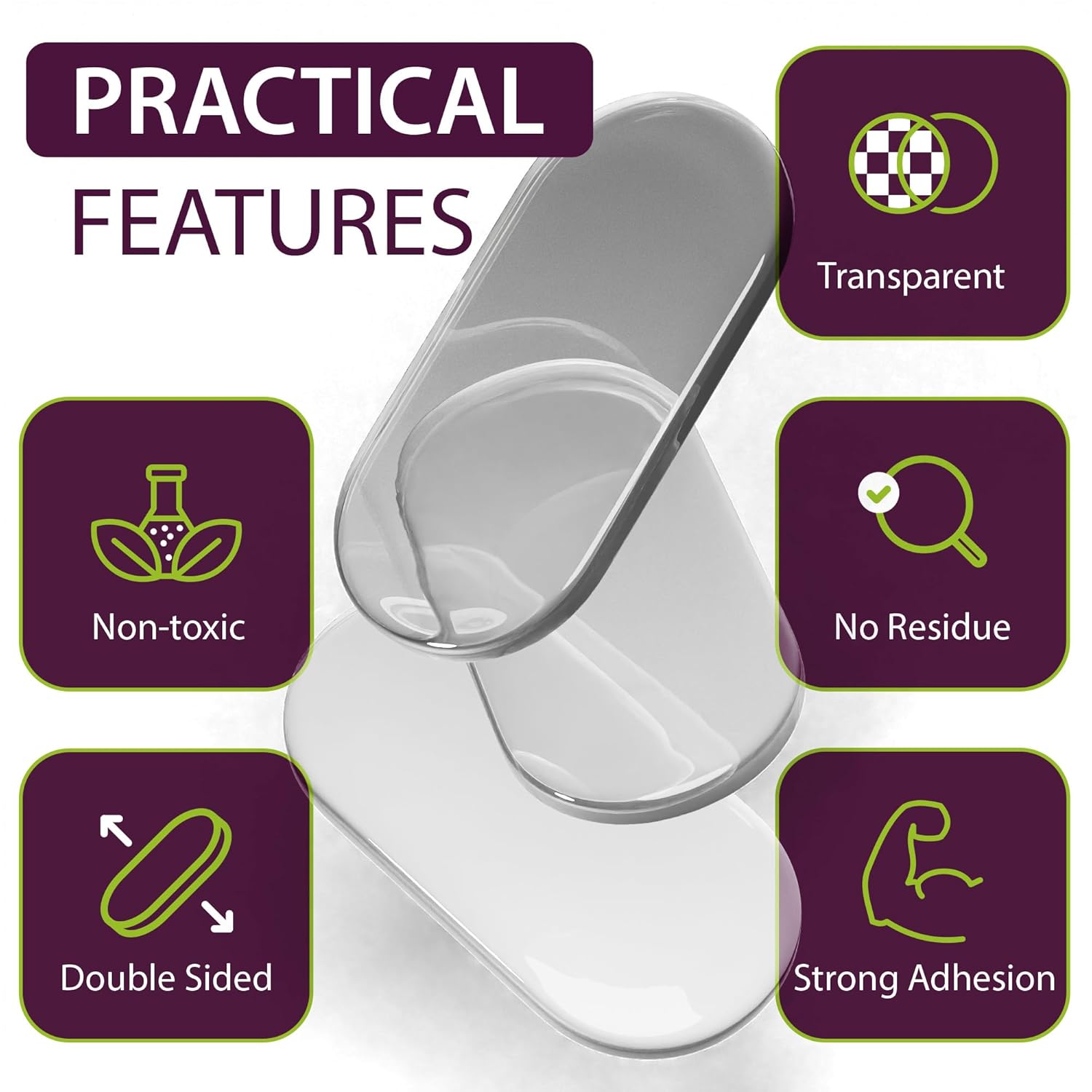 - 🦎 CLEAR & COMPACT: small oval shape and transparent structure of self adhesive gel dots makes it barely noticeable and provides a secure yet non-intrusive way to display collectibles, figurines, attach or fix items, hang lightweight object.