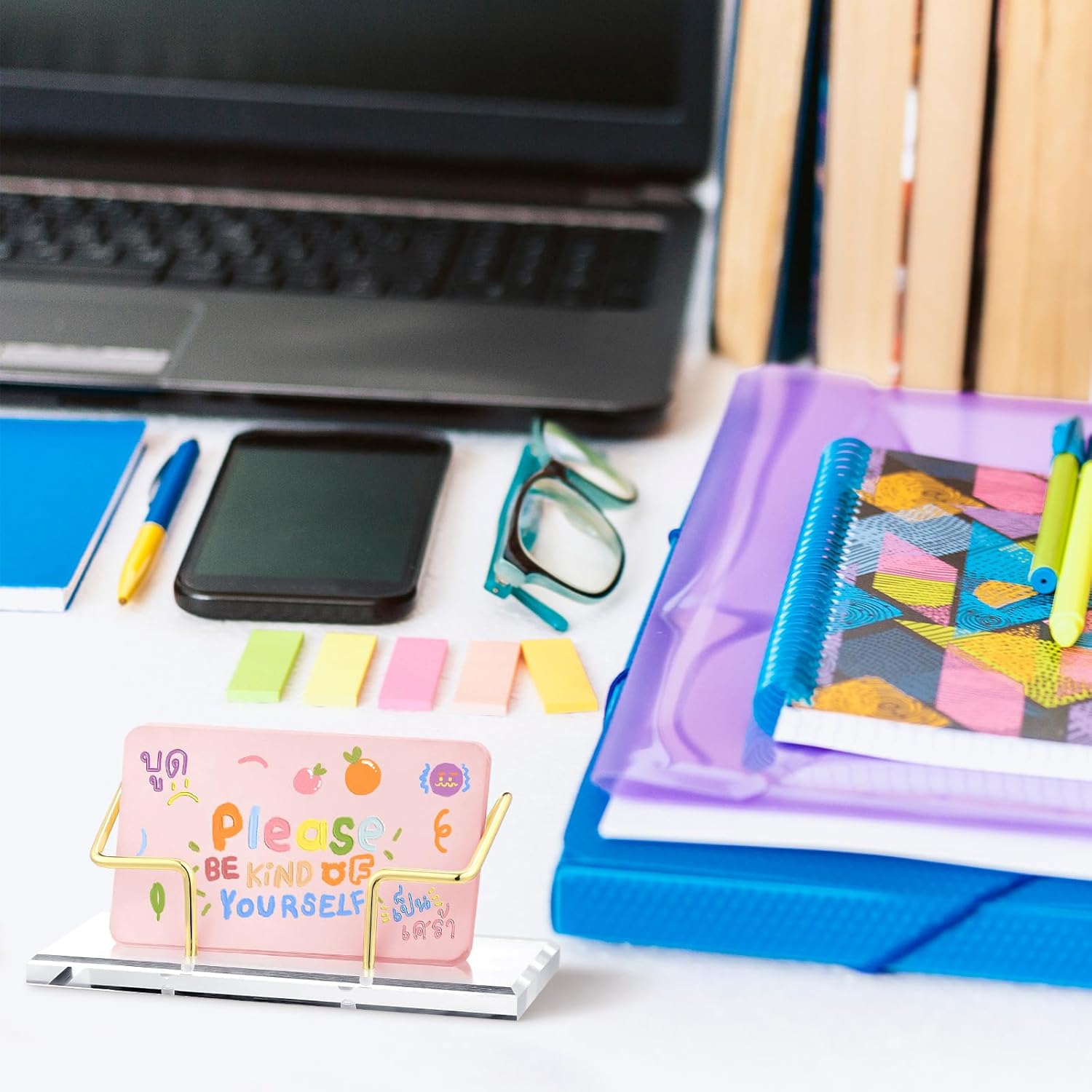 Amyhill 2 Pieces Acrylic Business Card Holder for Desk Clear Horizontal Business Card Display Stand Postcard Holder for Office Home Desktop (Gold)