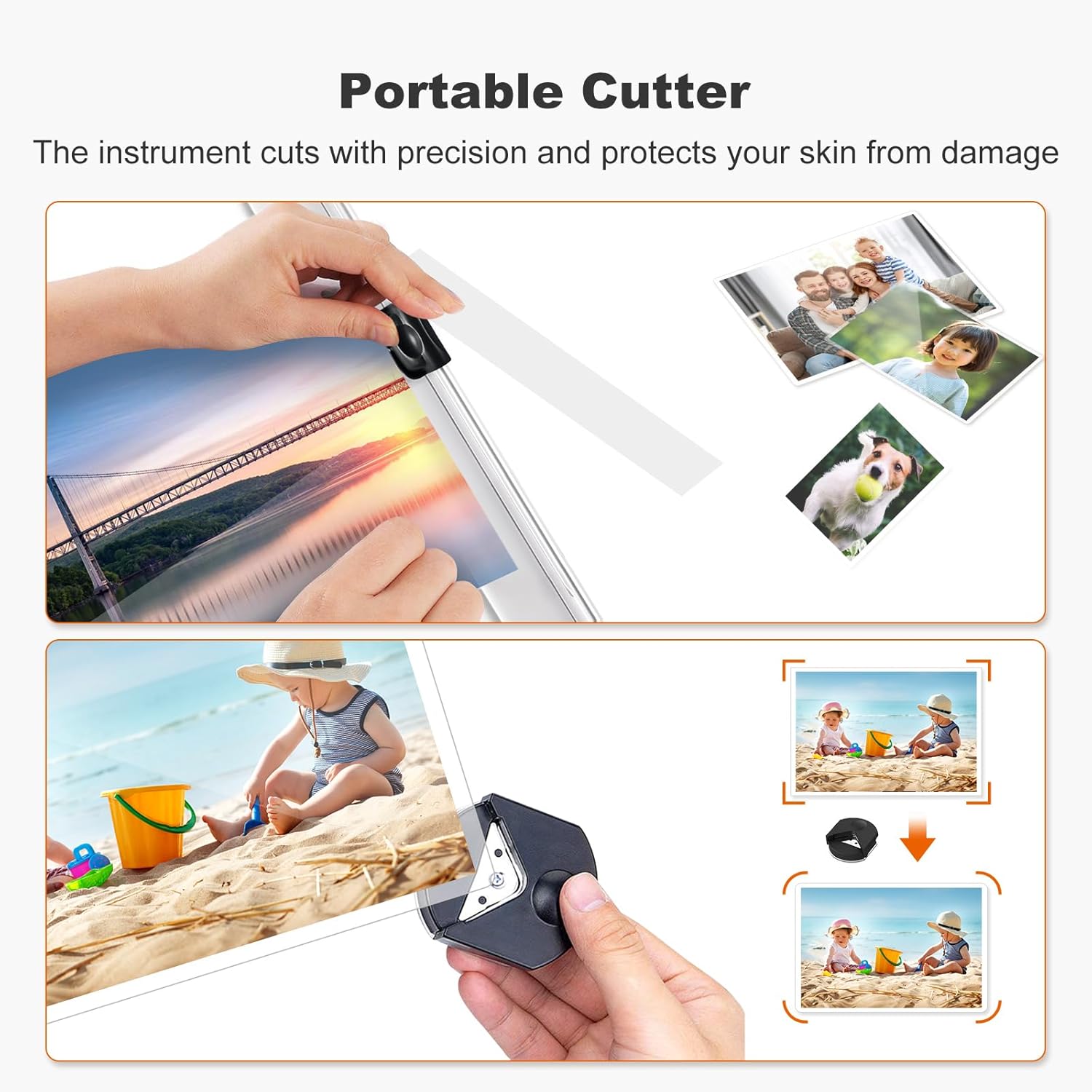 - 4-in-1 Paper Laminator Set - Includes Laminator*1, Paper Cutter*1, Corner Rounder*1, Laminating Pouches*40pcs(Letter Size*10, A5*15, A6*15), Laminating preheating time of 3 minutes, adhesive speed ≥ 270mm/min, Faster preheating and higher laminating speed save your valuable time, while maintaining a quiet and efficient operation. meet your needs.