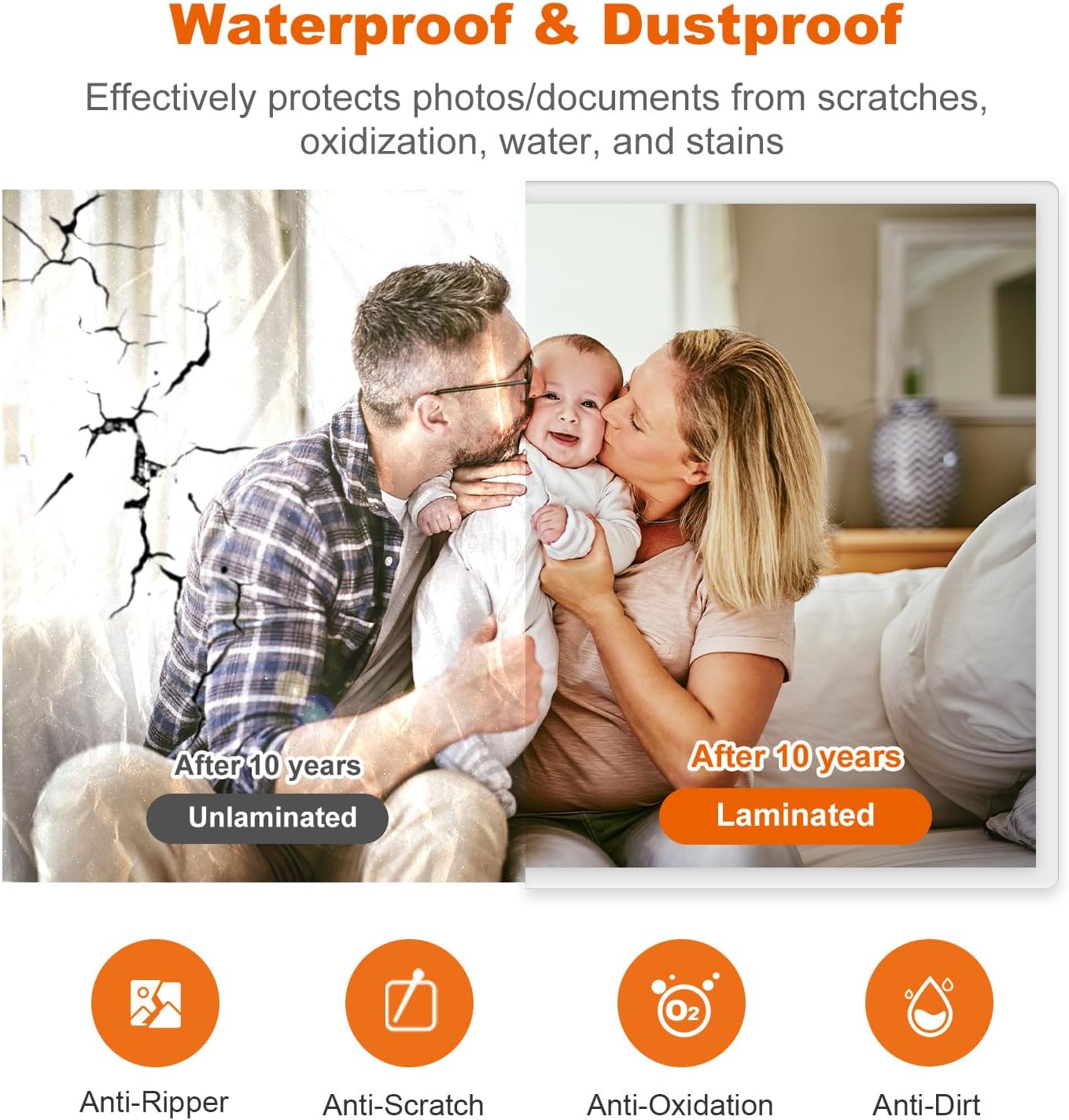 - 100% Never Jam - Laminator machine has built-in patented jam proof technology, which effectively prevents glue jamming during the operation of the machine, protects items from damage, and provides the most effective protection for your items