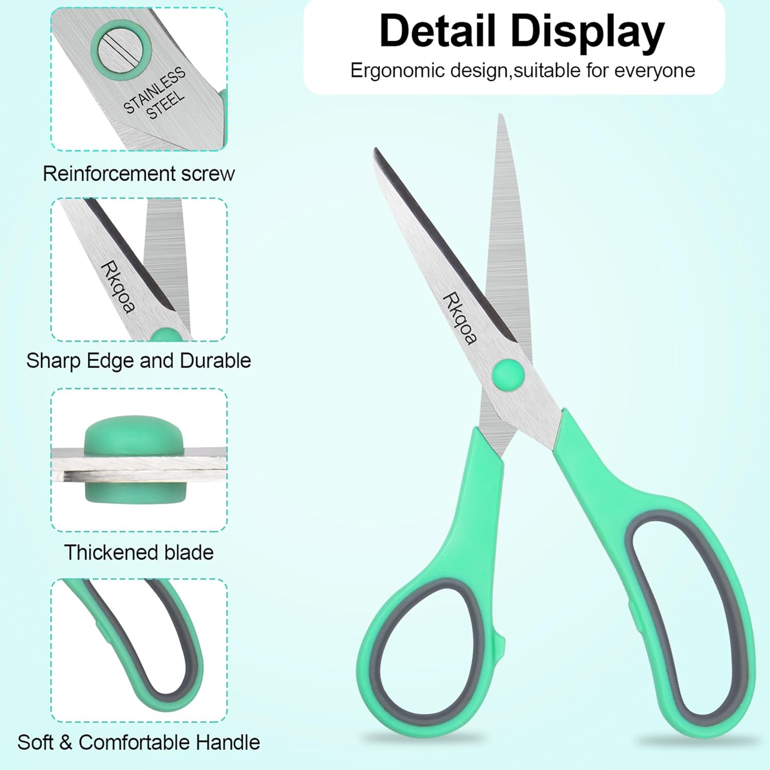 - Rkqoa soft-grip 8 inch scissors: Measures approximately 8 by 3.0 by 0.4 inches, It is also Grate for Back to School, Christmas gift, Birthday gift, Mother's Day, Craftng, DIY Day, Father's Day, Colleague, Valentine's Day, Thanksgiving Day, Party, Happy New Year's Gift Idea. WARNING: keep out of reach of children, Not for children under 5 yrs.
