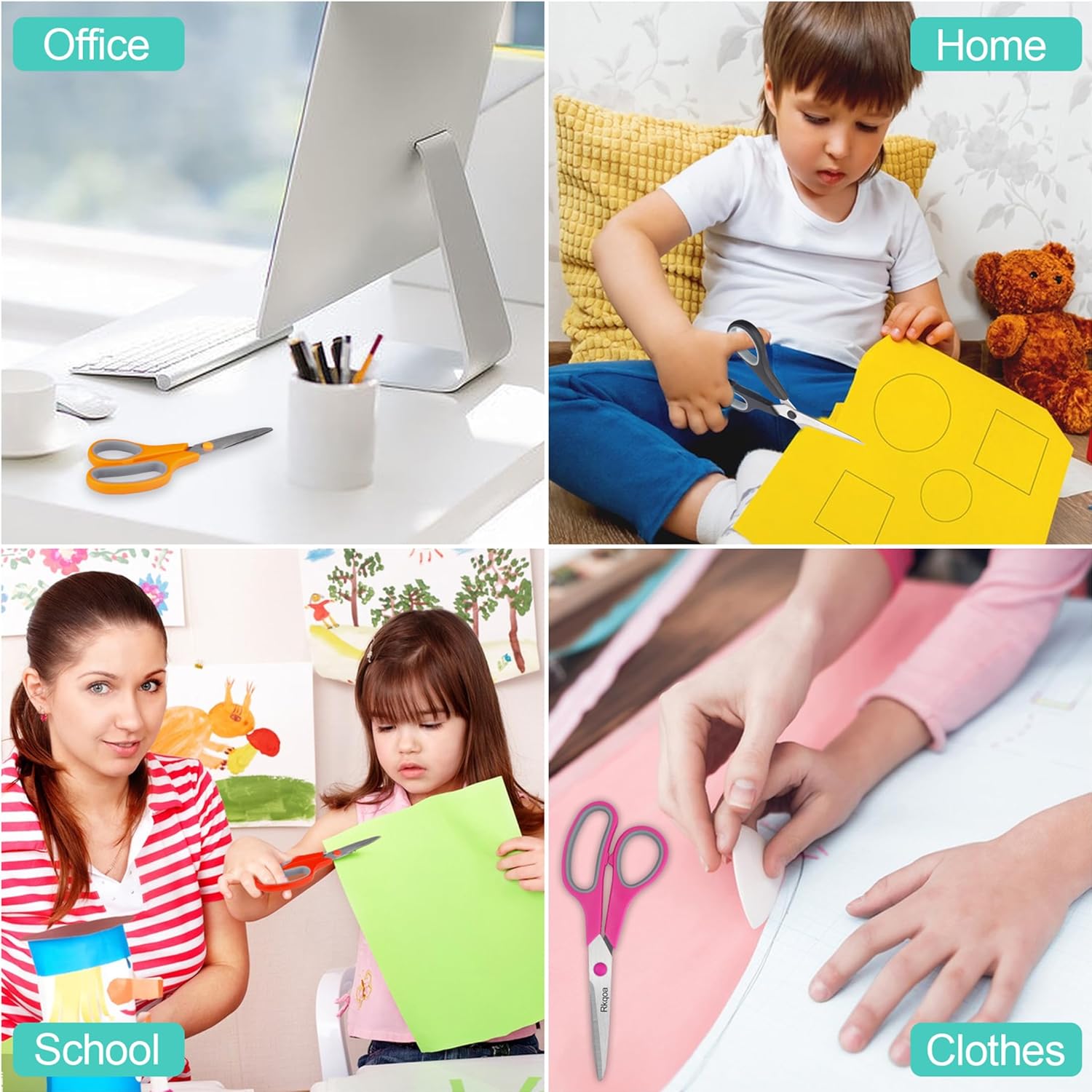 - Definitely Worth Having the Office School Household Scissors: The all purpose scissors can use almost everywhere. Such cutting through paper, thin cardboard, poster board, light ribbon, tape, photos, light fabric, card stock paper, foam, foil, burlap, canvas etc. Perfect for Fabric, sewing, tailoring, quilting, dressmaking, cutting patterns, alterations, hand craft supplies. These all-purpose scissors are a must-have tool.