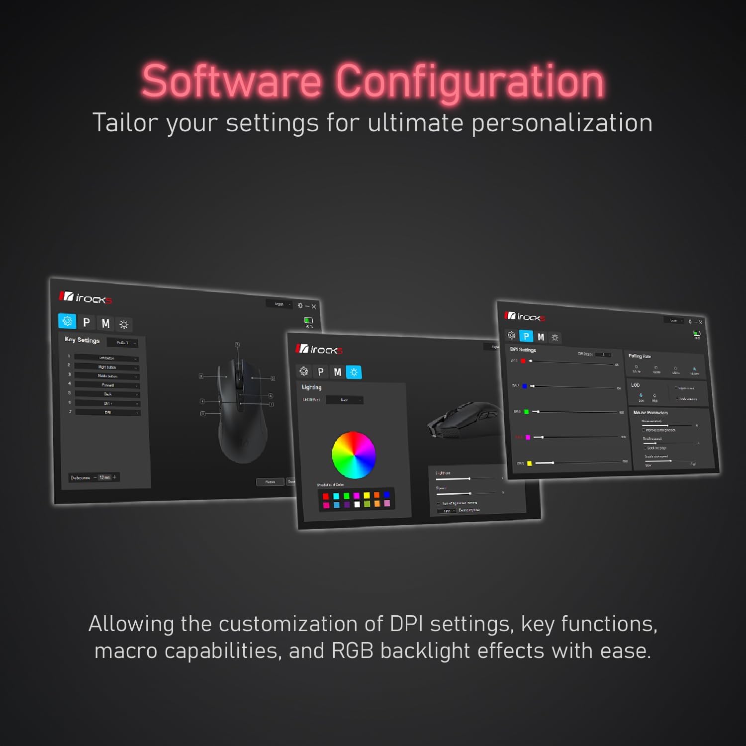 iRocks M31R Wireless Gaming Mouse, Triple Mode 2.4G/ Bluetooth/USB-C Detachable Cable Gaming Mouse, Kailh GM8.0 Mouse Switches, Advanced PixArt PAW3395 Optical Sensor, Up to 26,000 DPI - Pink