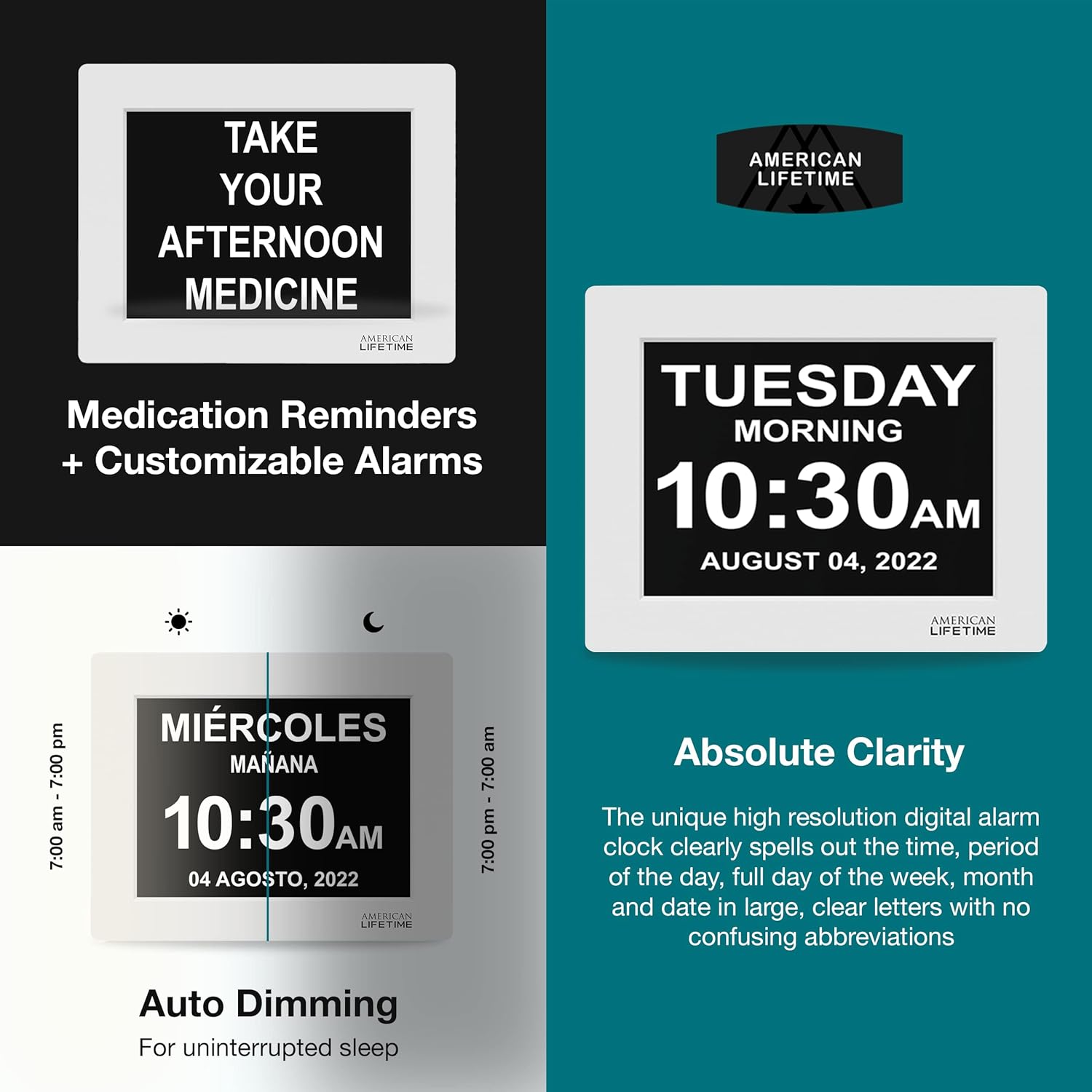 - Customizable alarms: The American Lifetime dementia clock for seniors extra large offers multiple alarm options, allowing individuals to set reminders and up to 5 daily alarms for important events, such as taking medication or appointments.