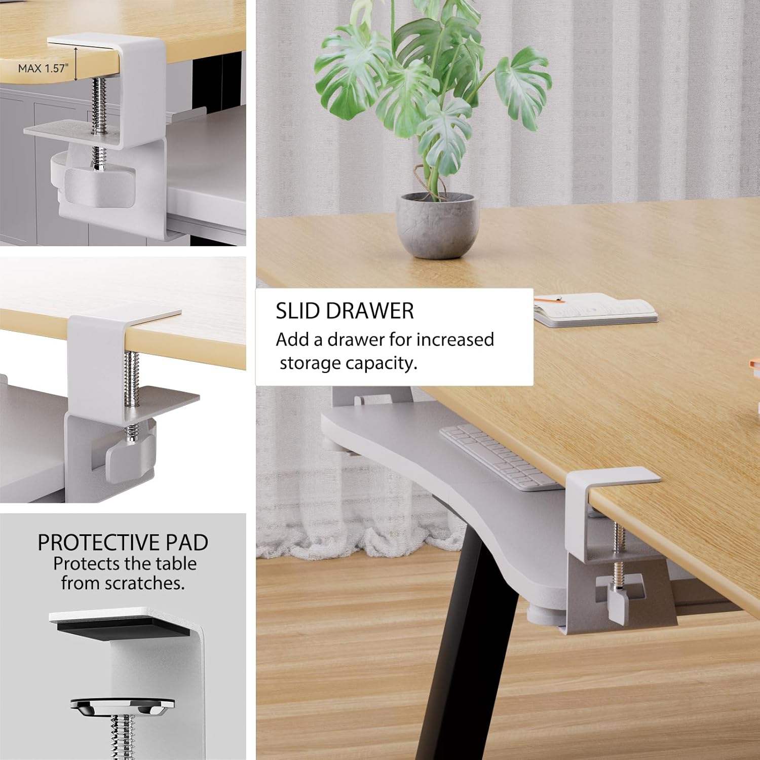 - [Sliding Tray] - The retractable, smooth sliding rail design allows the desk drawer to slide smoothly back and forth. It encourages you to keep your arms and wrists in a neutral position and helps prevent injuries caused by poor posture. Simply slide the tray under the desk when not in use and remove it quickly when more space is needed.