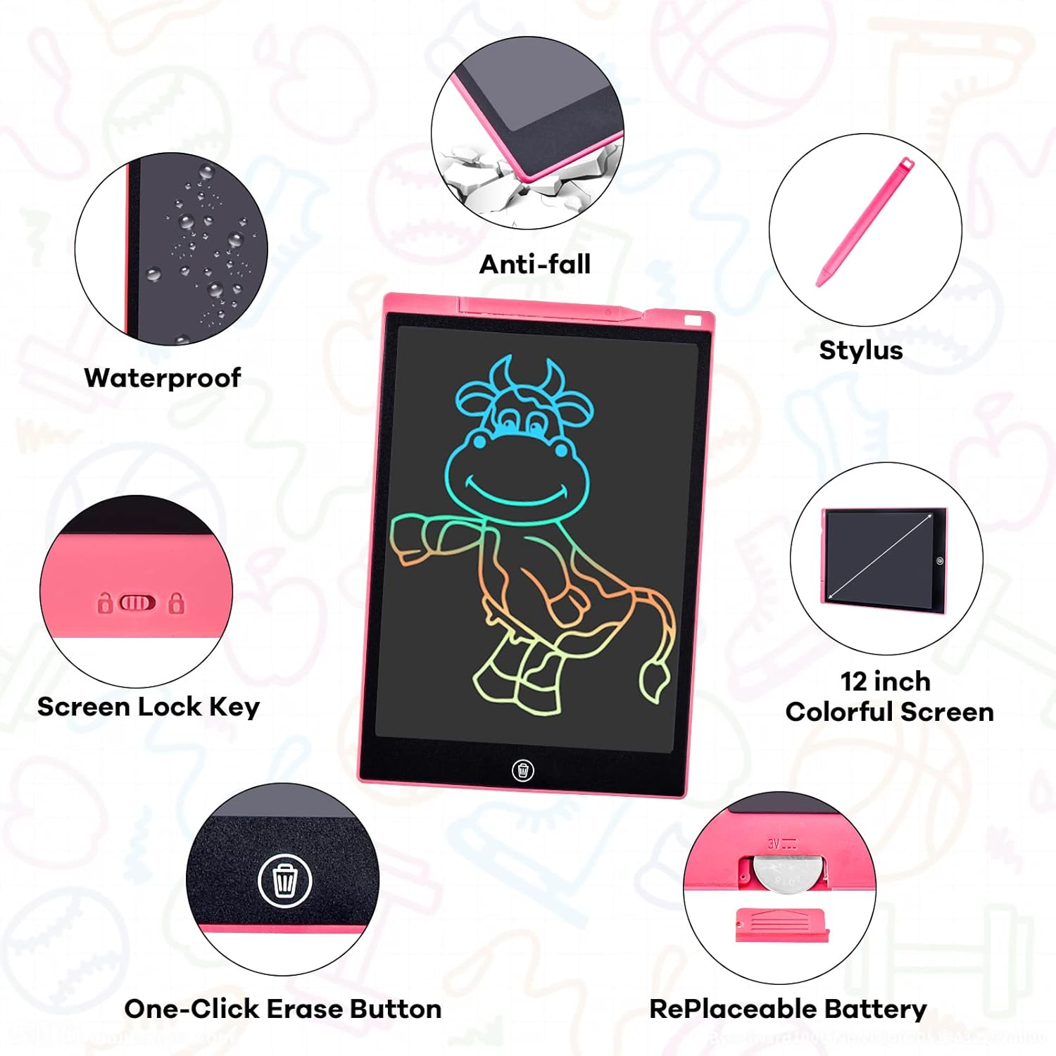 2 Pack LCD Writing Tablet, 12 inch Colorful Toddler Drawing Pad Doodle Board, Erasable Educational Toy Christmas Birthday Gift for 3 4 5 6 7 Year Old