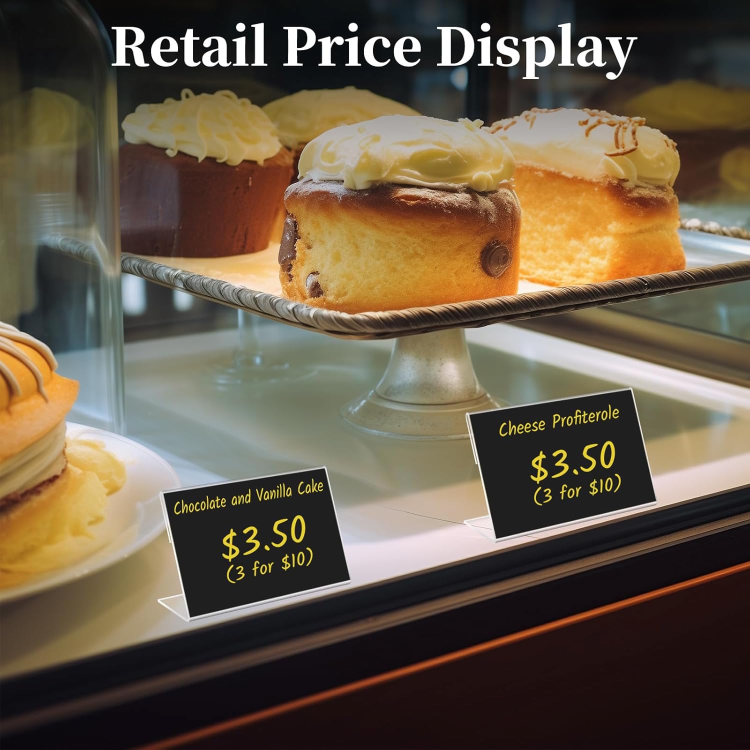 - ✌Easy to Use: This food label stand is designed in an L shape, making it easy for you to insert and take out labels. The sleek and transparent design allows your content to take center stage. The transparent exterior allows people to easily view information, making these acrylic sign holders ideal for retail displays, trade shows, events, and office settings.
