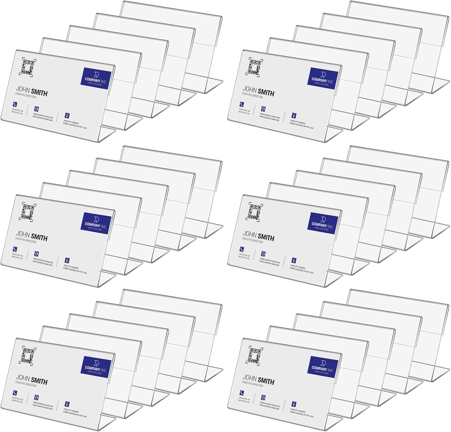 - ✌Elevate Display: This set of 30 L-shaped acrylic card holders is perfect for displaying business name cards, price tags, food labels, and more. Whether you're organizing a retail display, labeling food items at a buffet, or identifying seating arrangements at an event, these clear card display stands offer a practical stylish solution.