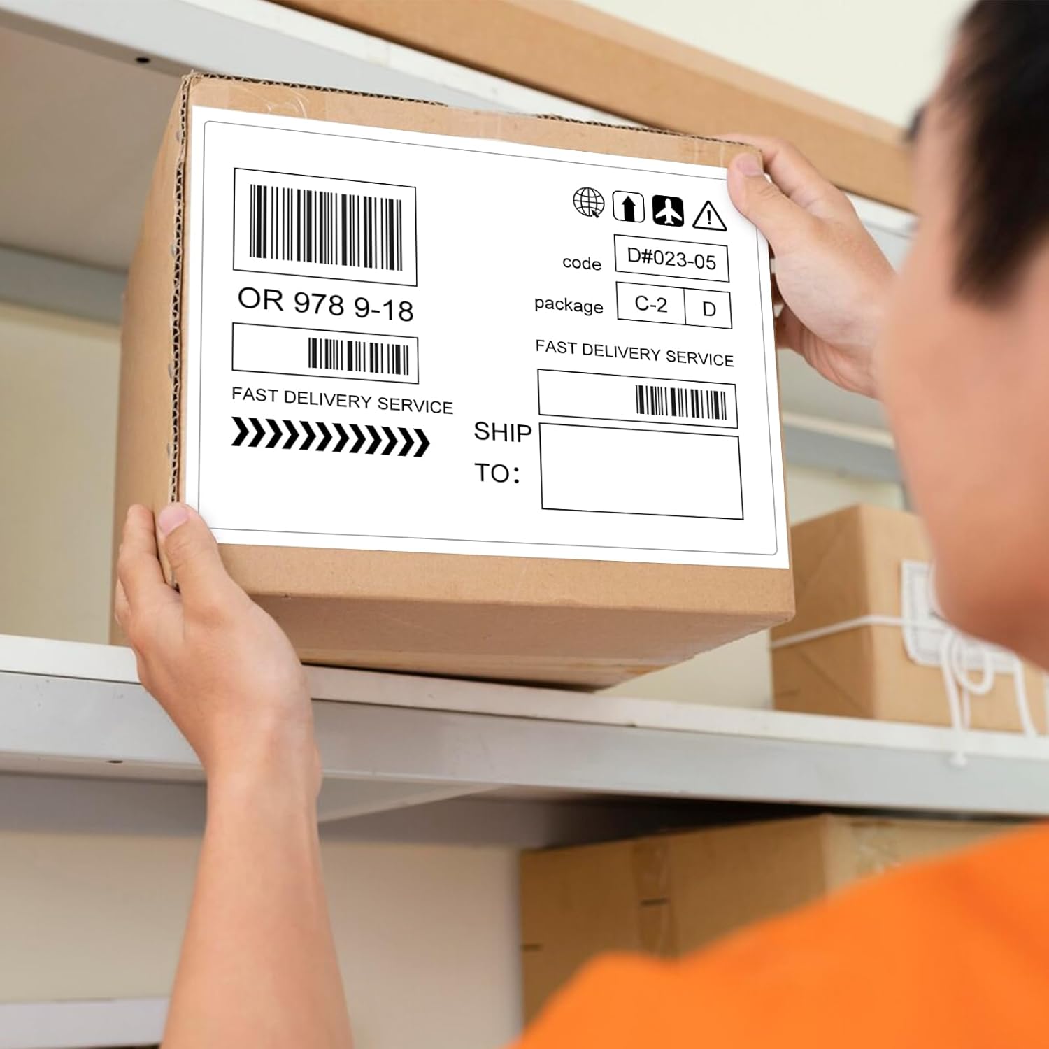 - Versatile Usabilit: Large full shipping label stickers offer versatility in DIY designing stickers of forms. They adhere seamlessly to surfaces including metal, plastic, glass, tin, paper, cardboard, corrugated boxes, envelopes, plastic bags, and beyond