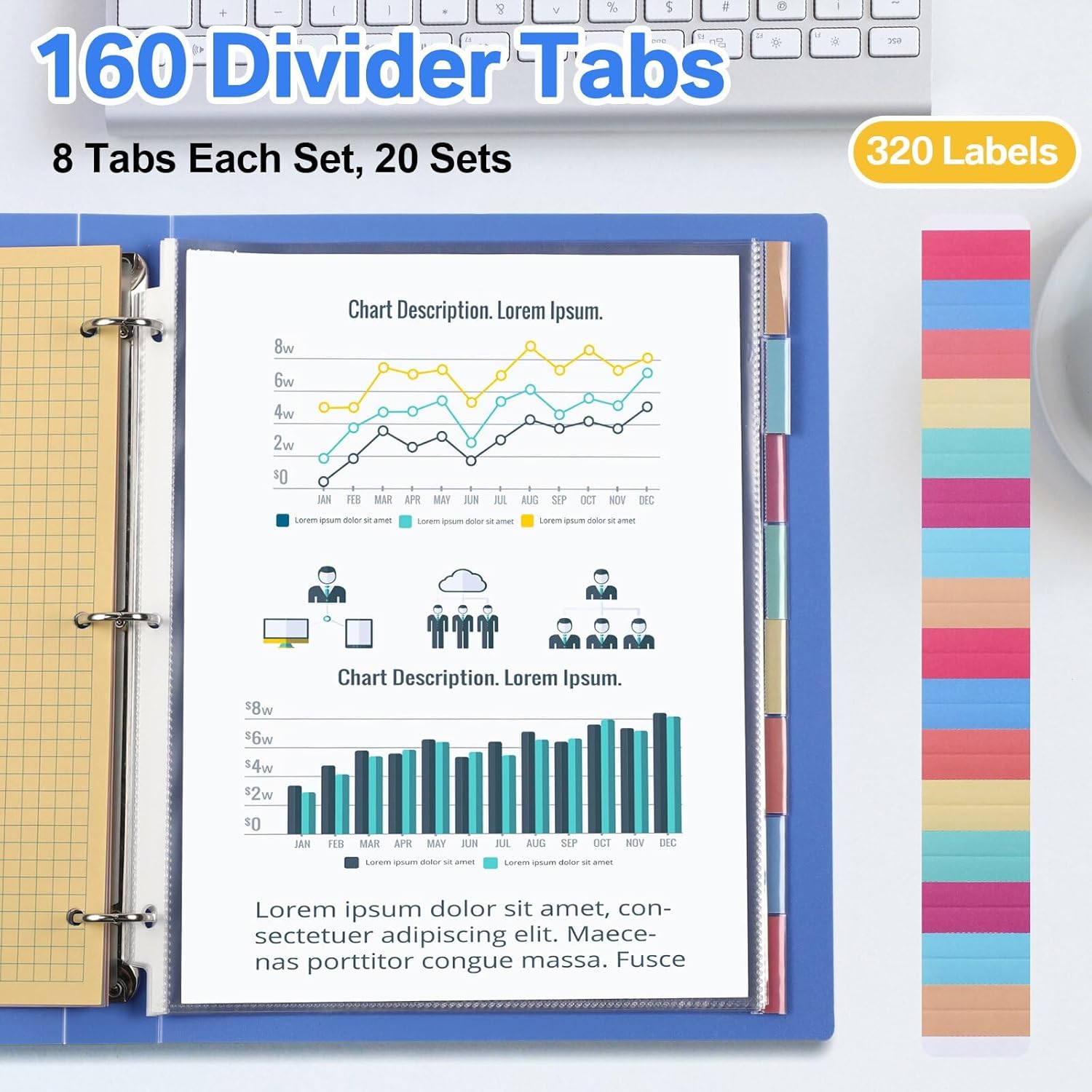 - Package List: the package comes with 30 sets of 240 pcs of sheet protectors for 3 ring binder, each set contains 8 pcs of sheet protectors with 8 different colors tabs, you can easily organize files and quickly find what you need with these 3 ring binder dividers, sufficient quantity offers you ample organization options for your documents