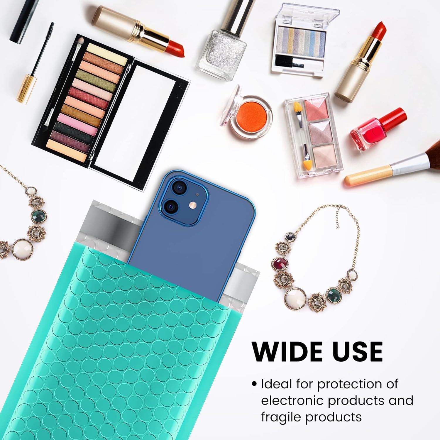 - Perfect Size Teal Bubble Mailers: The small bubble mailers outer size is 4x8 inch, while the inner size is 4x7 inch. It is very suitable to transport for jewelry, makeup, cards, phone case, lips, photos,handcraft and more.