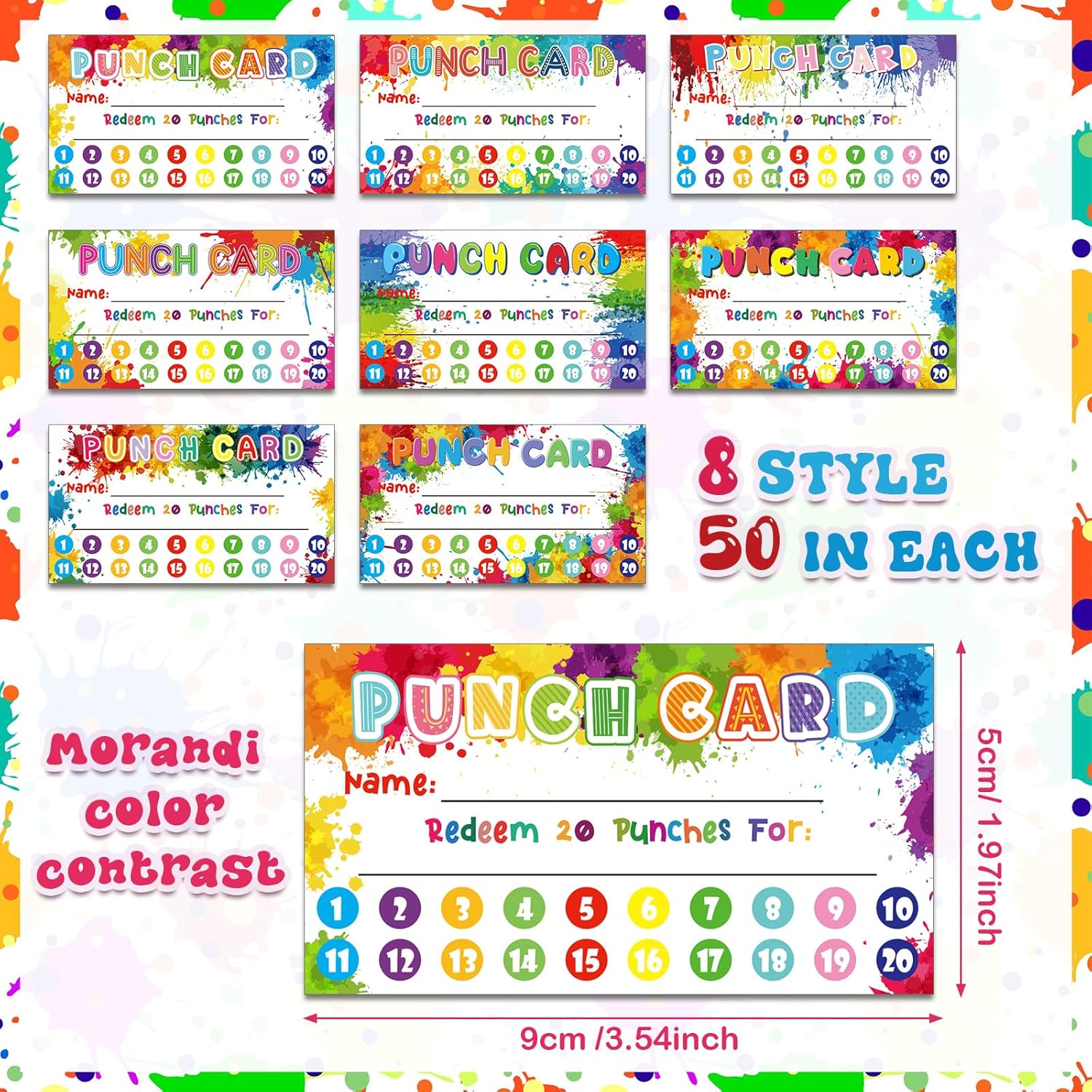 Fumete 400 Pcs Punch Cards for Classroom Reward Cards Behavior Incentive Loyalty Awards for Kids Students Teachers School Business, 8 Styles, 3.5 x 2 in(20 Rainbow Tie Dye Punches Style)