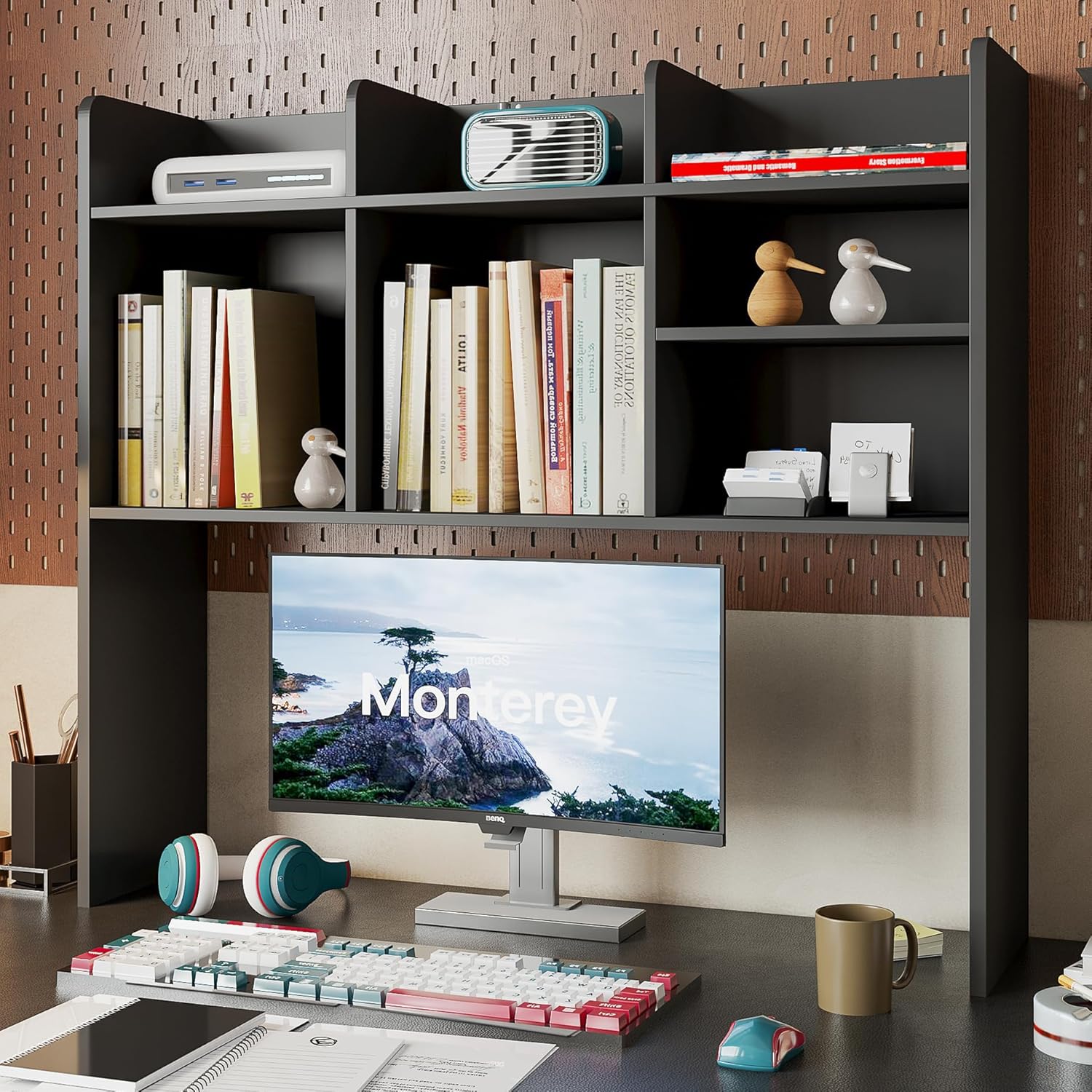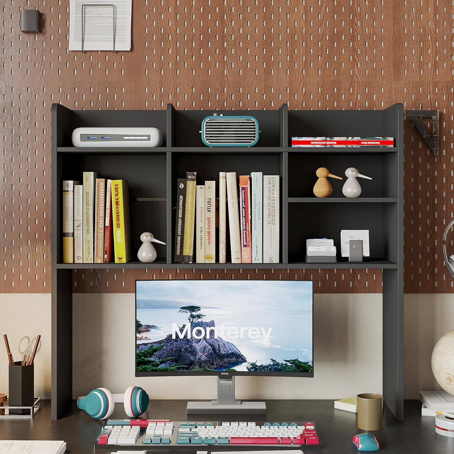 ChooChoo Desktop Bookshelf, Wood Desk Hutch Organizer with 7 Shelves for Computer Desk, Desktop Shelf Bookshelf Storage for College Dorm Office Home, Black