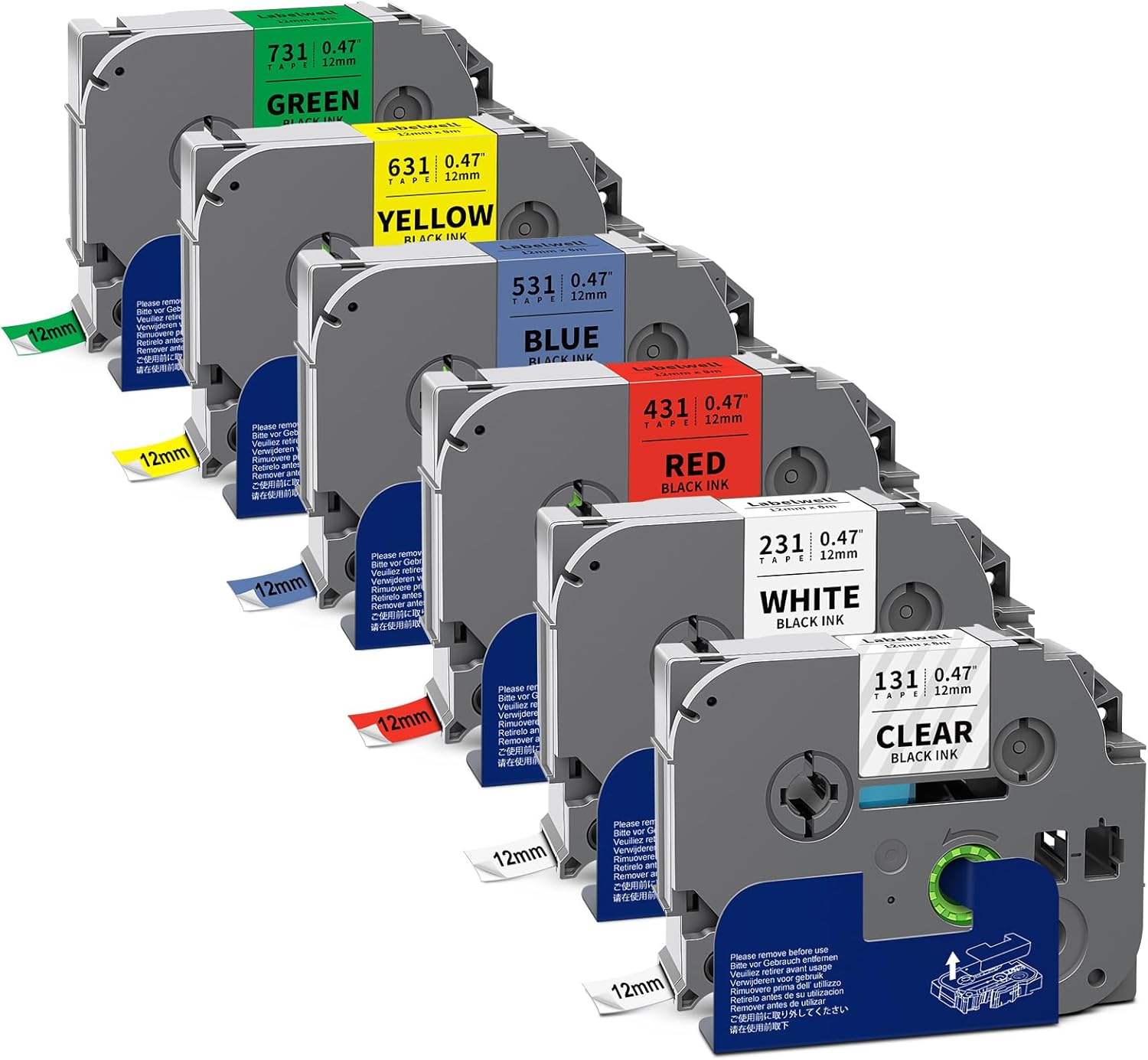 - Easy to use: These 12mm 0.47 Inch Laminated Color label tapes comes with split backing design, the backing tape is split lengthwise in the middle for easy peeling, and all of Labelwell TZe TZ Tapes with the feature of water resistant, temperature resistant, fade resistant, oil resistant, abrasion resistant, chemical resistant, and no sticky residue