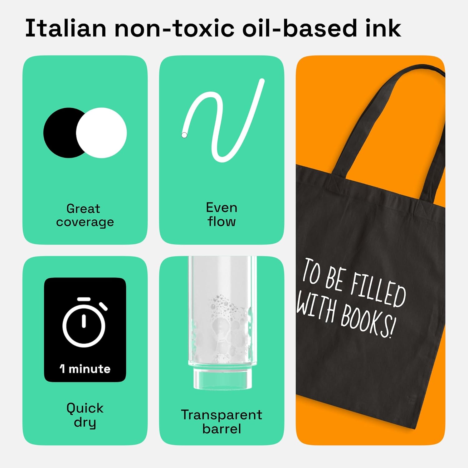 - Multiple Surfaces: Use these oil paint pens as oil markers for plastic and glass or as oil based fabric markers for clothes. Each white marker permanent is water-resistant. They’re also good for leather, vinyl, or epoxy resin. And the nibs are solid, even on rocks!