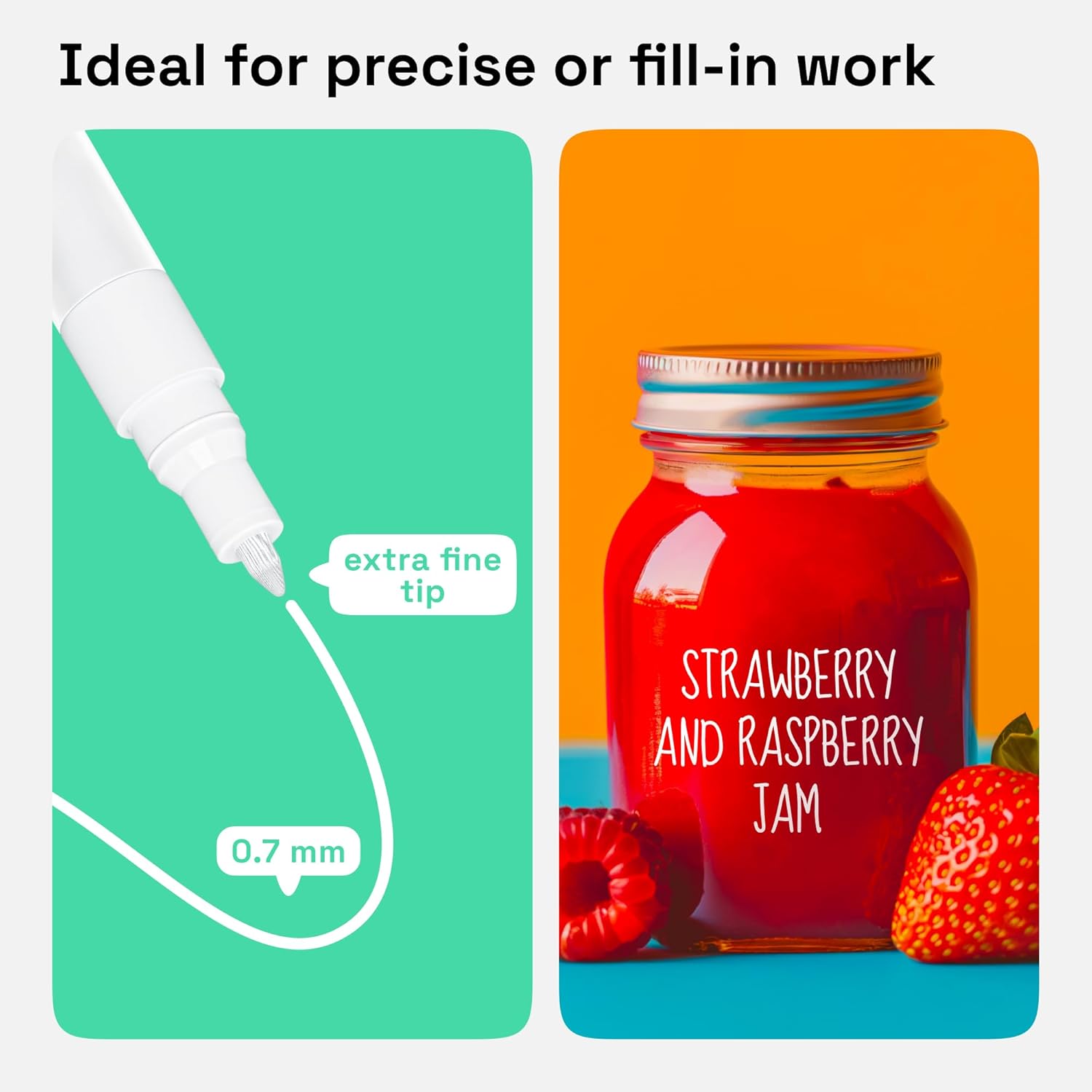 ARTISTRO 2 White Permanent Marker - Waterproof Markers for Tire, Fabric, Rocks, Glass, Ceramic, Wood, Paper - Oil Based Paint Pens - Extra-Fine Tip 0.7mm