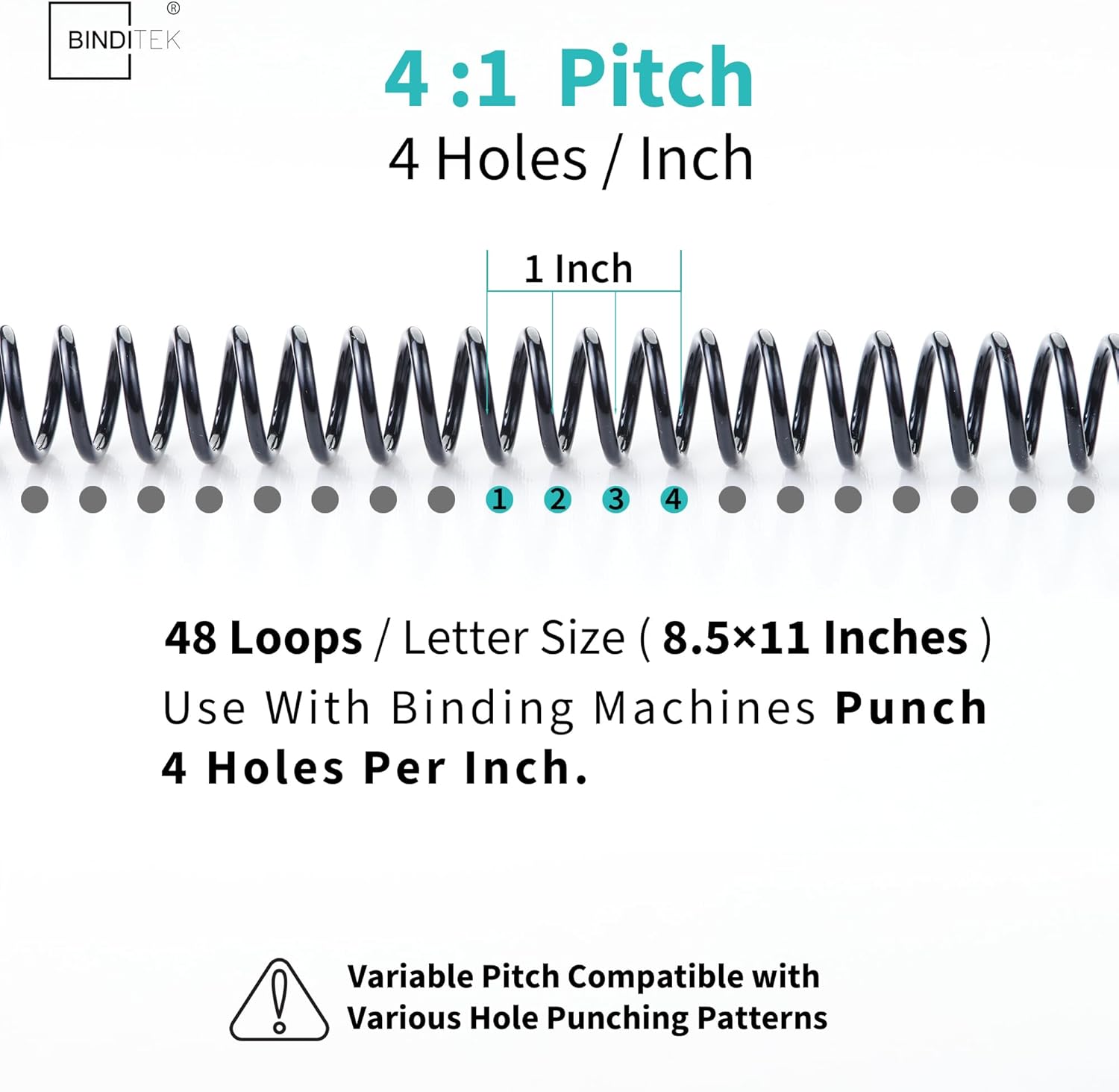 - 【4:1 Pitch & 48 Loops】Spiral binding coils have a 4:1 pitch, making them compatible with any binding machine that punches 4 holes per inch. (Attention: These 4:1 pitch binding coils are not compatible with the Cinch machine.)