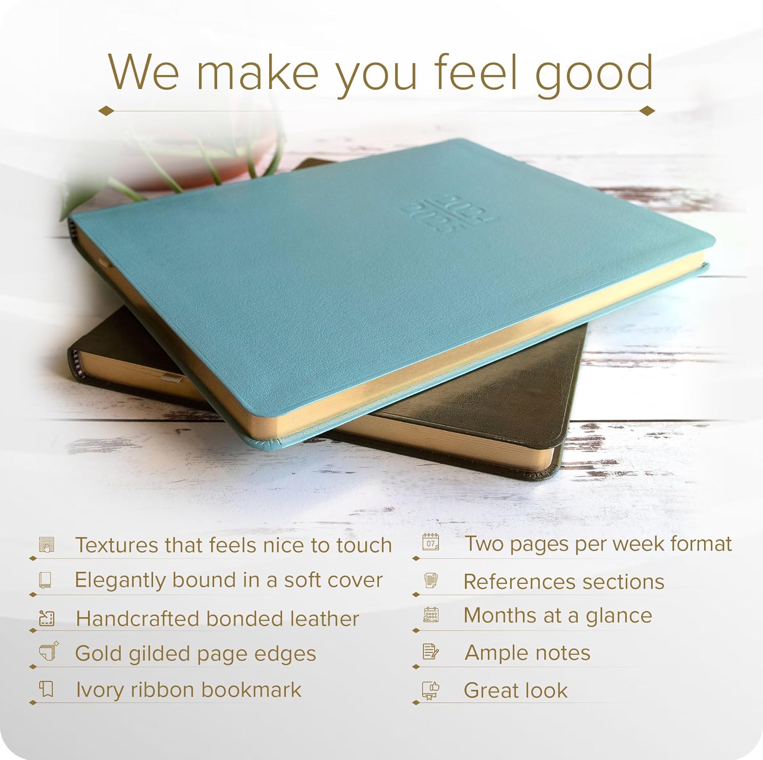 Gallery Leather Academic Planner 2025, Teacher and Student Weekly Monthly Planner, Elegantly Bound Calendar with Gold-Gilded Page Edges, 18 Months - Acadia Hope - 9 x 7 "