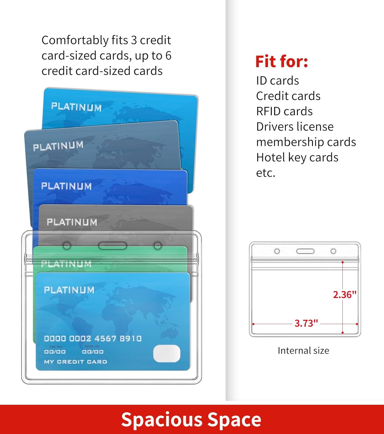- Practical Dimensions: Our horizontal badge holder has external dimensions of 3.94" x 3.35" . It can hold up to approximately 6 credit card-size cards. Perfect for organizing your cards